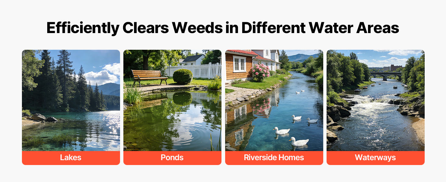 Náš plážový valec, navrhnutý na čistenie pod vodou, pracuje efektívne v jazerách, rybníkoch, riekach a iných vodných tokoch. Poskytuje účinné riešenie na kontrolu prerastených vodných burín.