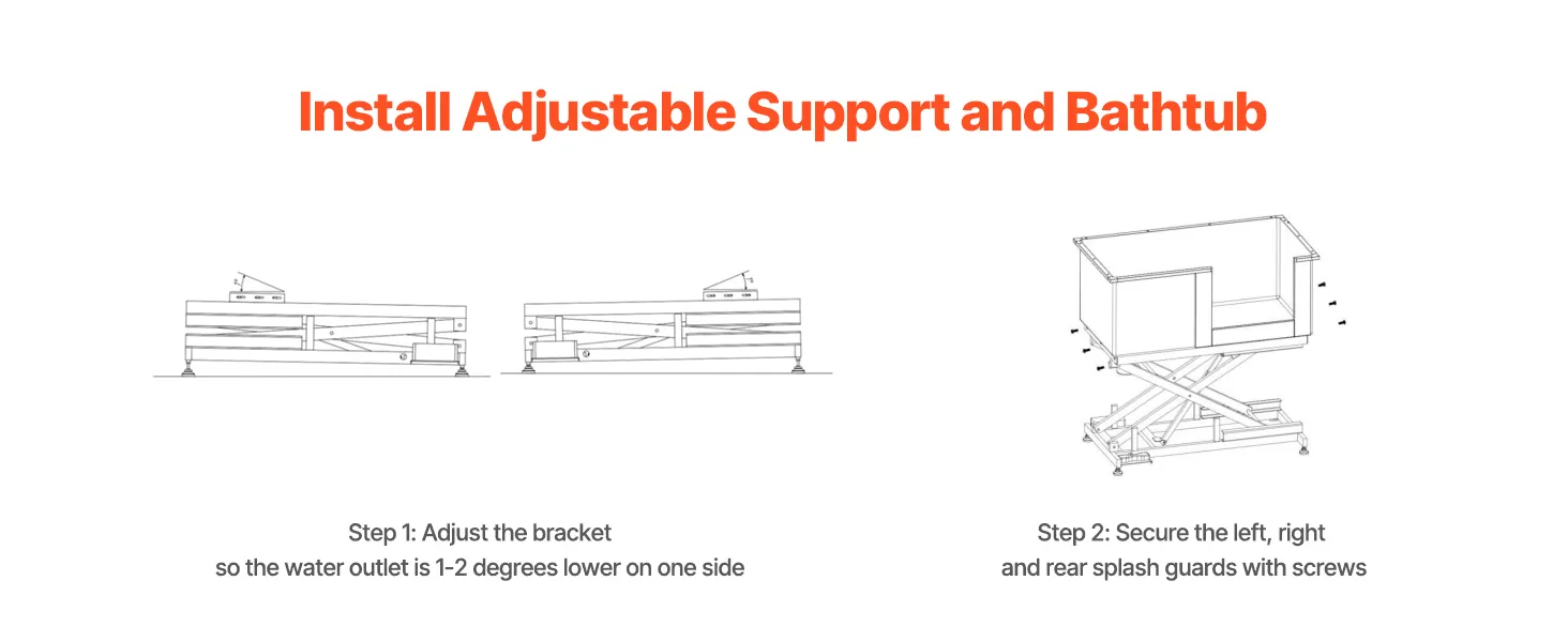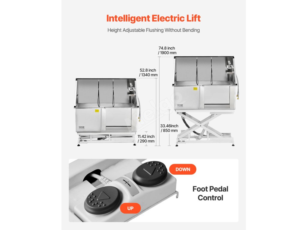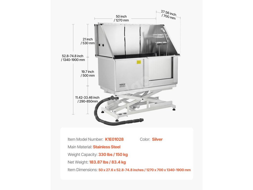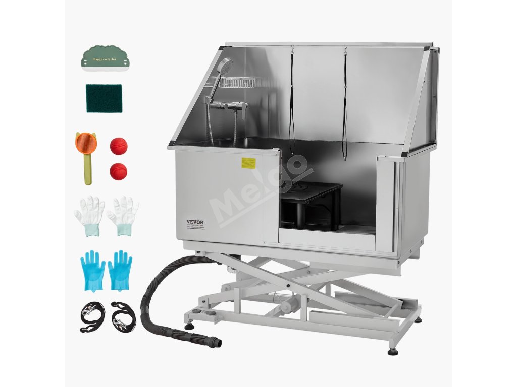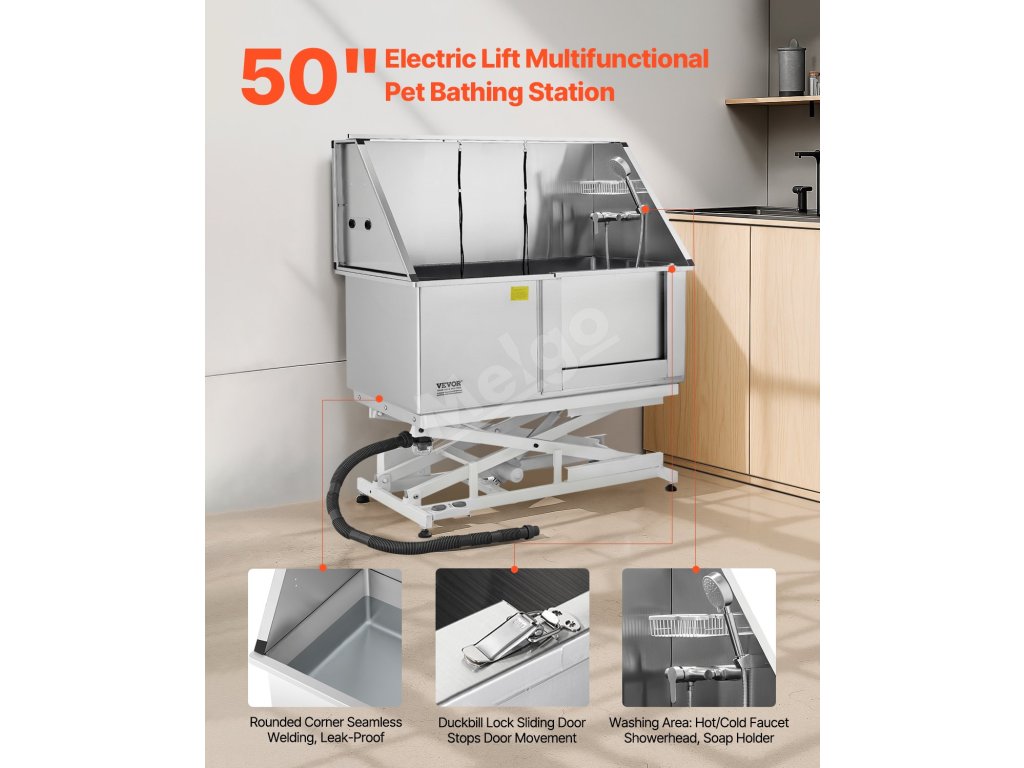 Elektrický zdvíhací kúpeľ psa, nerez 127 cm, sprcha, pravé dvere