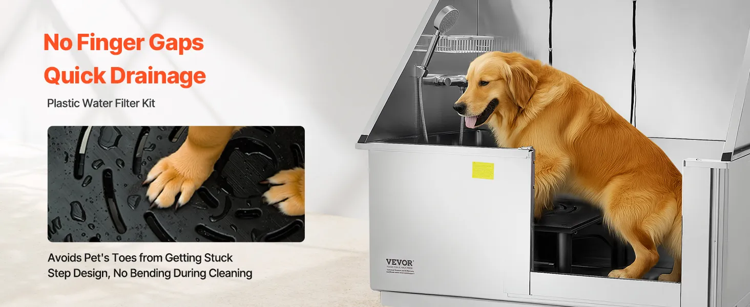 Vďaka bezšvovému zvaru z jedného kusu a zabudovaným tesniacim pásikom táto vaňa zaručuje, že voda neunikne. Je vyrobená z nehrdzavejúcej ocele, je odolná proti korózii a robustná, pričom si časom zachová svoj nový vzhľad. Vanička má hladké okraje, ktoré zabezpečujú bezpečnosť domácich zvierat aj používateľov počas kúpania.