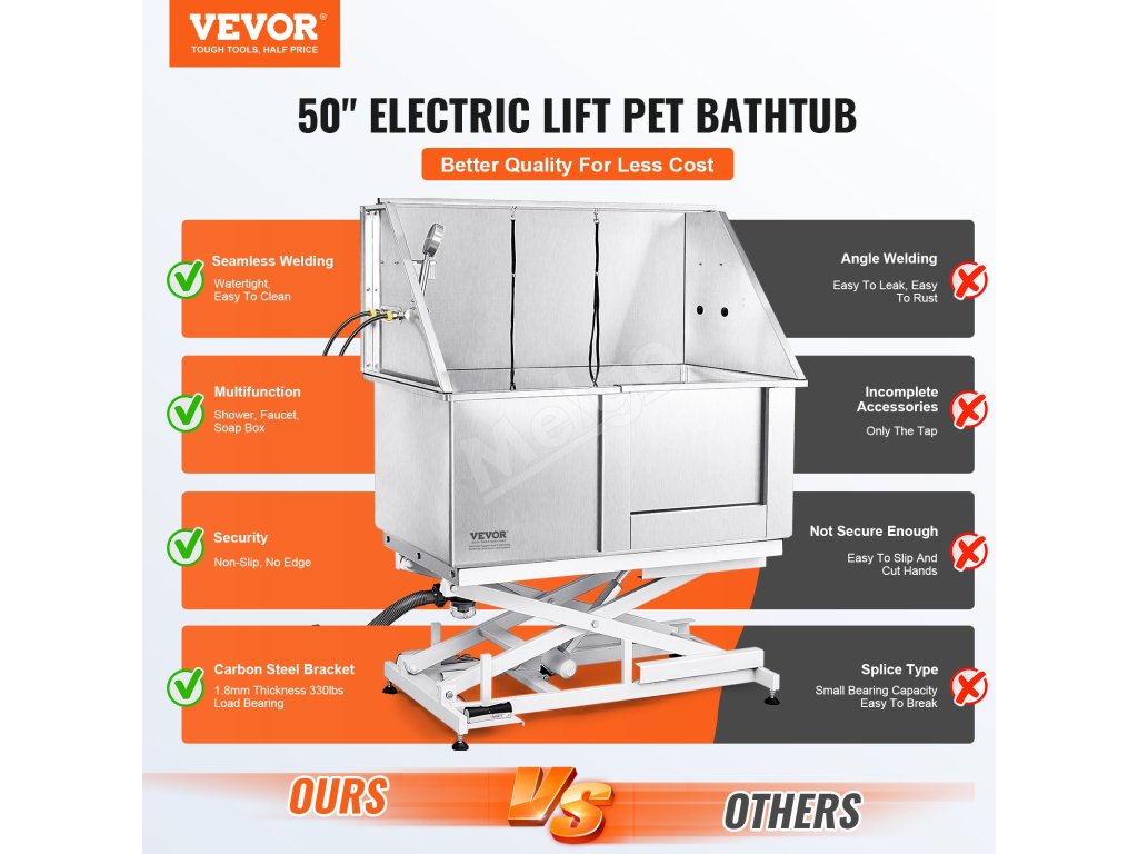 Bezšvové zváranie, netesnosť, vysoká nosnosť 330 libier, vhodné pre domáce zvieratá všetkých veľkostí, odolné elektrické nastavenie výšky, zaoblený dizajn hrán pre bezpečnosť domácich zvierat