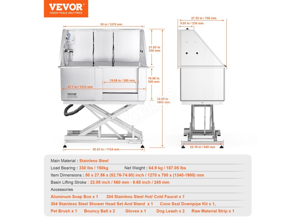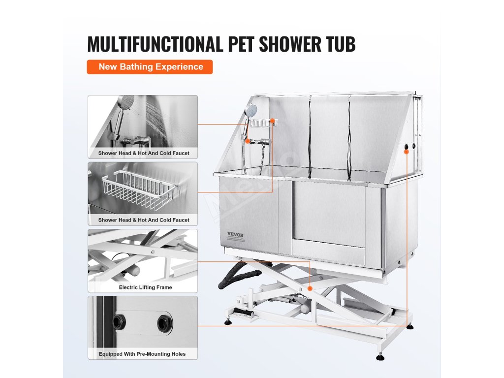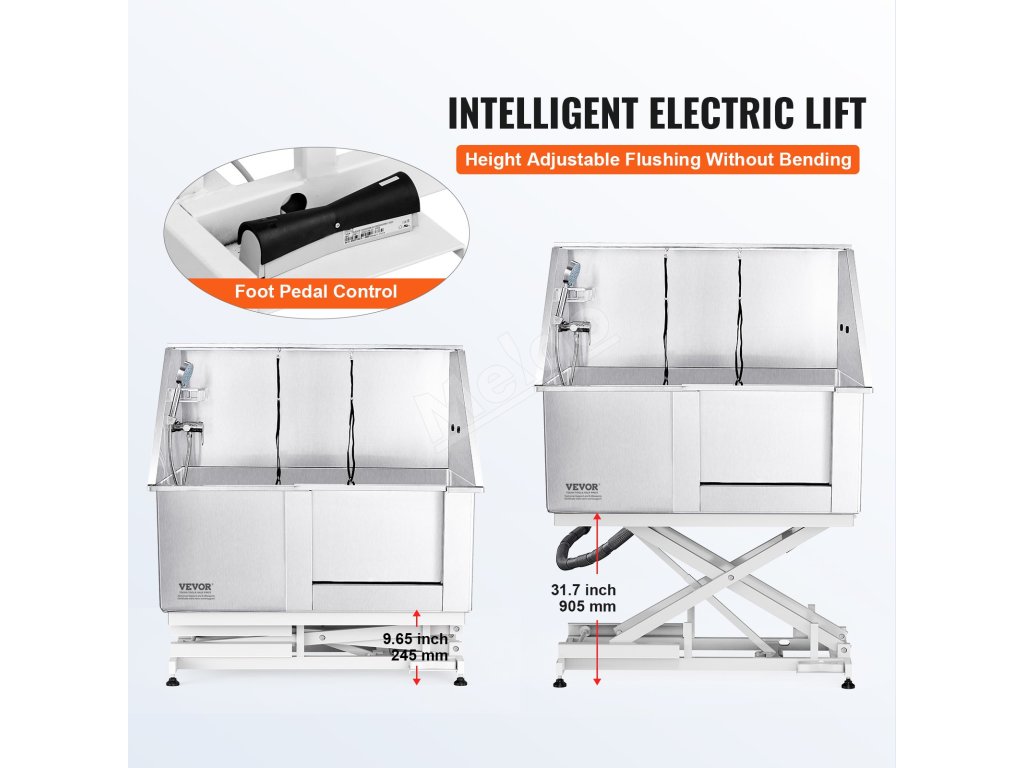 kúpeľná vaňa pre psy 1,27 m nerezová, elektricky nastaviteľná, pravá