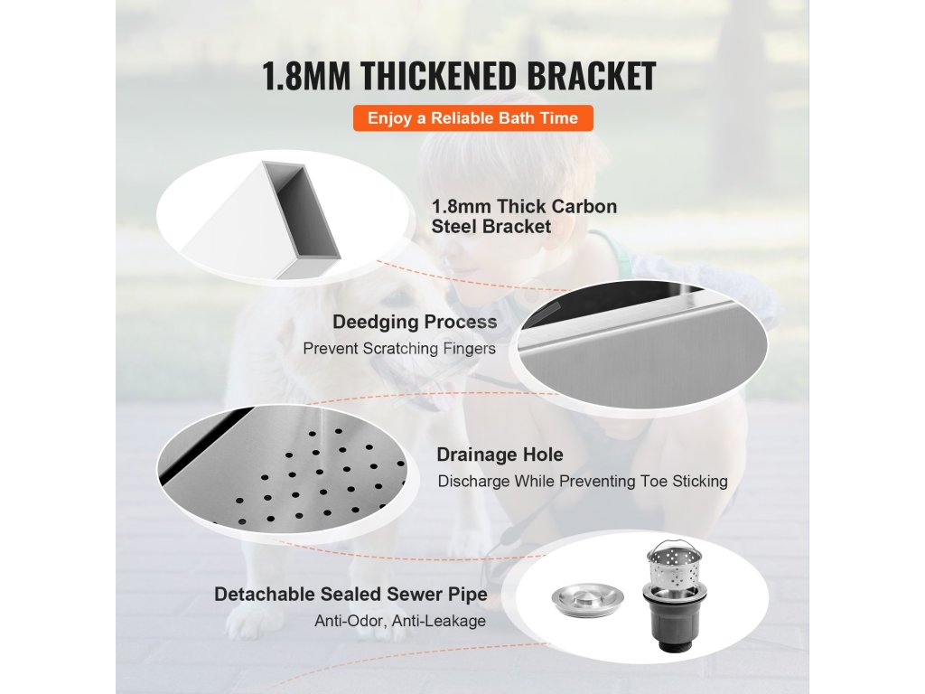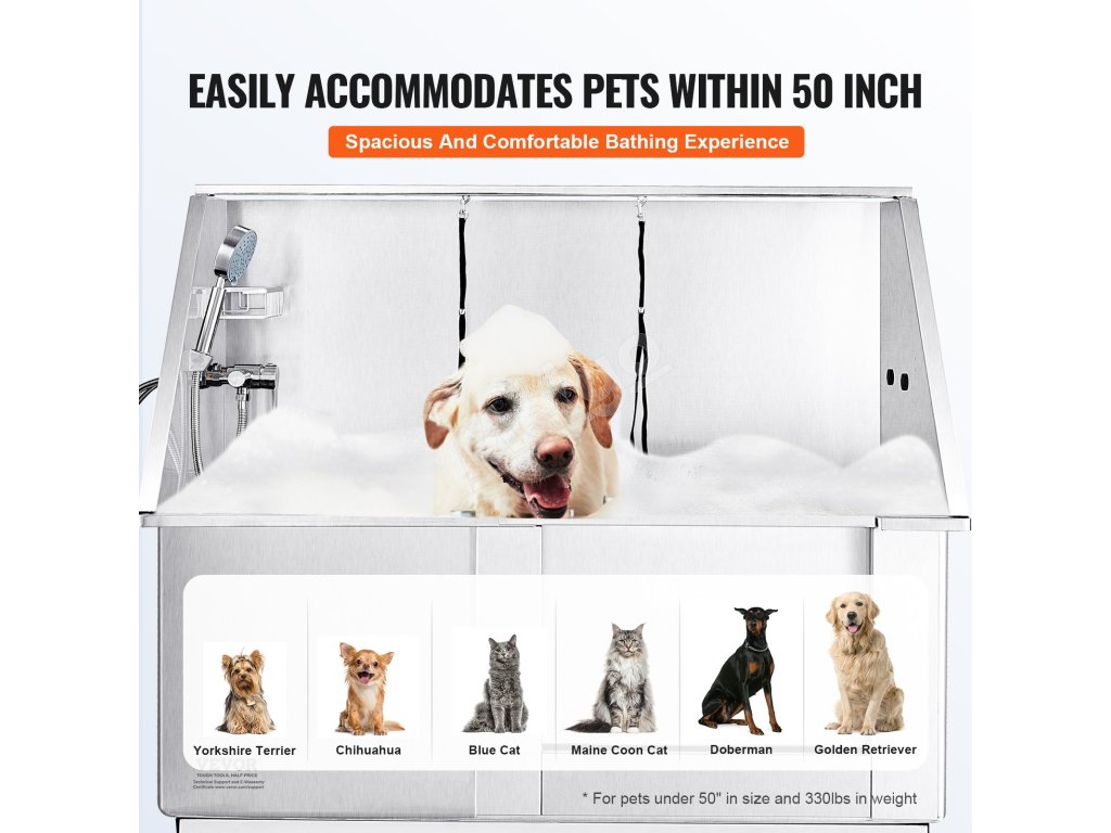 Vhodná pre domáce zvieratá s veľkosťou do 50 palcov a hmotnosťou do 300 libier. Bezšvové zváranie integrovaného rámu eliminuje riziko netesnosti a konštrukcia z nehrdzavejúcej ocele 304 zaručuje trvanlivosť a odolnosť voči opotrebovaniu.