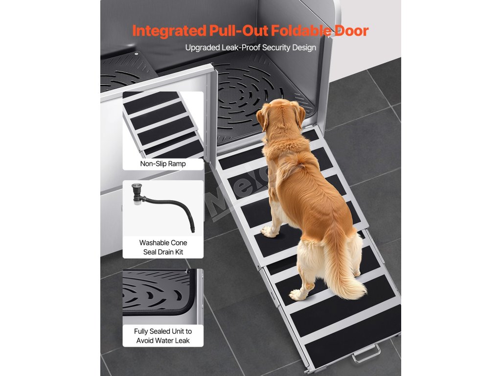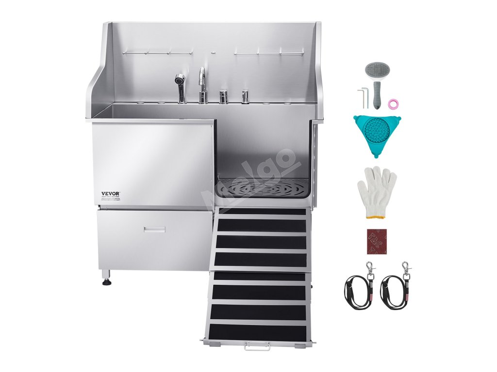 Stanica na kúpanie psov, nerez 304 127 cm, protisklzová rampa, zásuvka