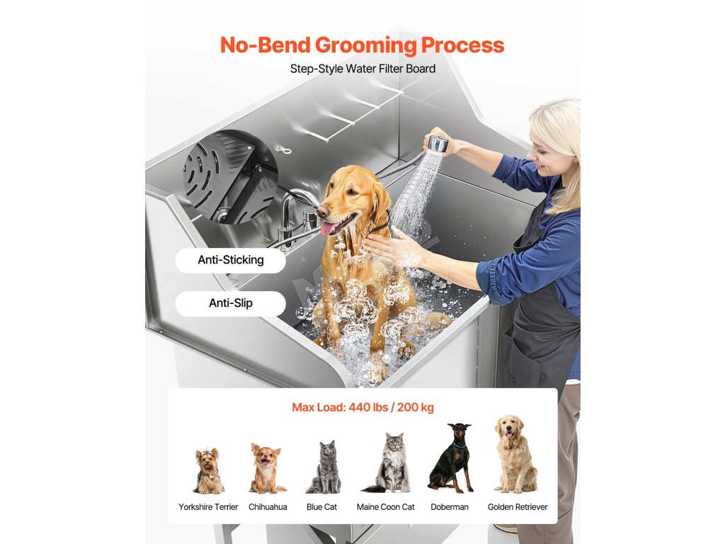Vďaka bezšvovému zvaru z jedného kusu a zabudovaným tesniacim páskam táto vaňa zaručuje, že voda neunikne. Je vyrobená z nehrdzavejúcej ocele, je odolná proti korózii a robustná, pričom si časom zachová svoj nový vzhľad. Vanička má hladké okraje, ktoré zabezpečujú bezpečnosť domácich zvierat aj používateľov počas kúpania.