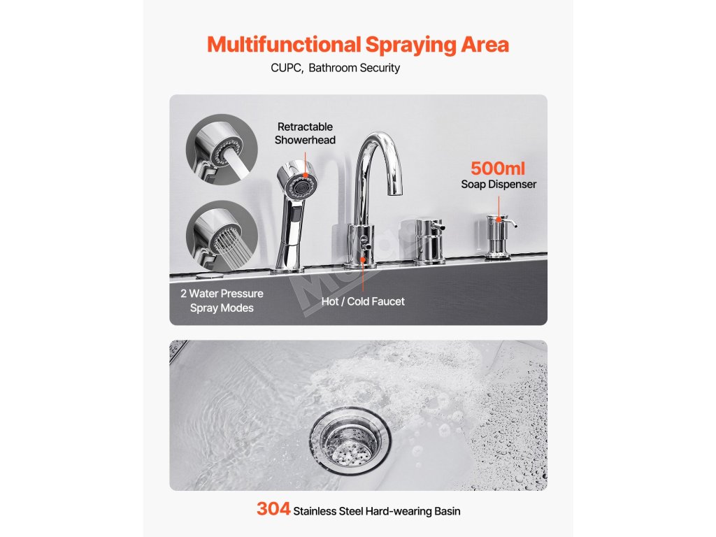 S dávkovačom mydla, batériou, sprchovou hlavicou, prepínačom teplá/studená voda