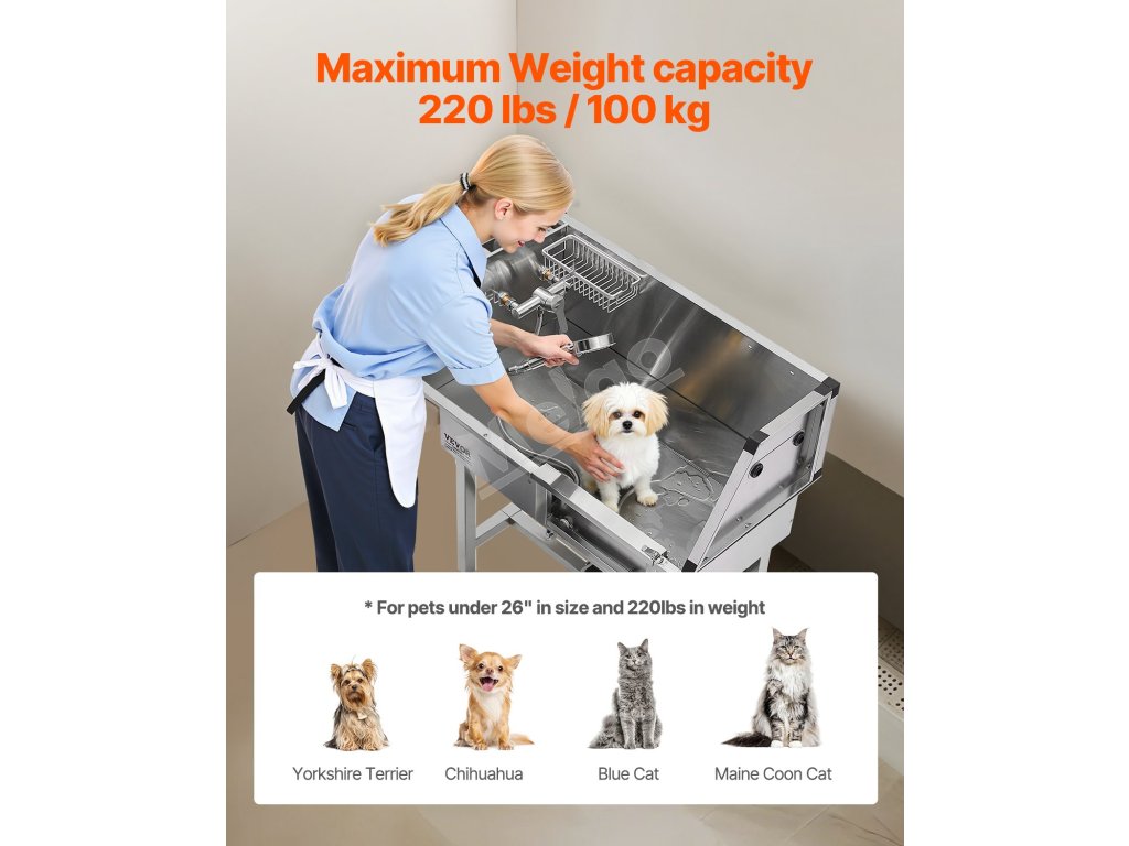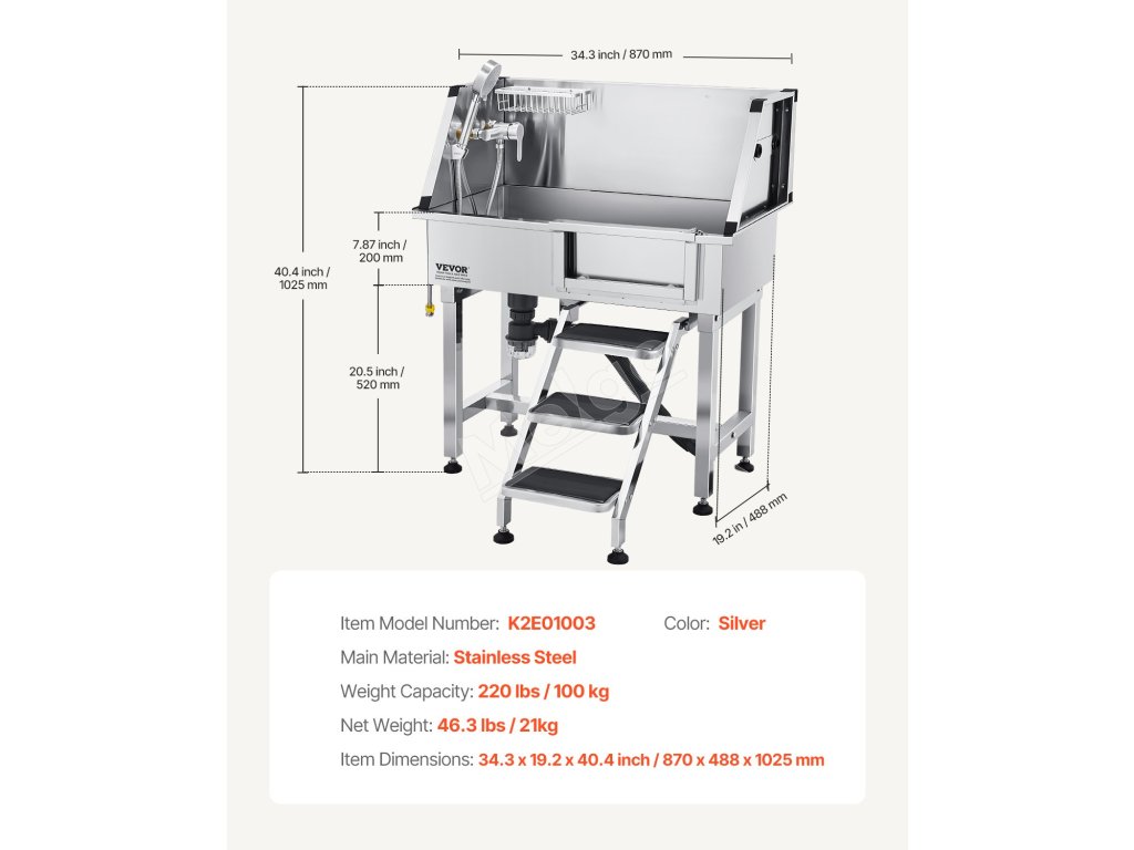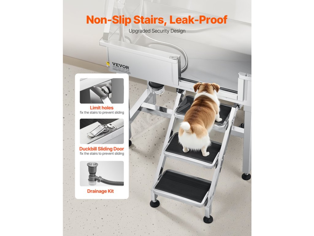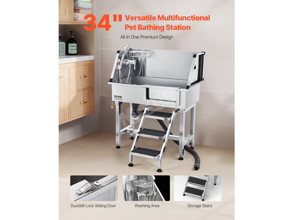 Táto vaňa zaručuje, že voda neuniká. Je vyrobená z nehrdzavejúcej ocele, je odolná voči korózii a robustná, pričom si časom zachová svoj nový vzhľad. Vanička má hladké okraje, ktoré zabezpečujú bezpečnosť domácich zvierat aj používateľov počas kúpania.