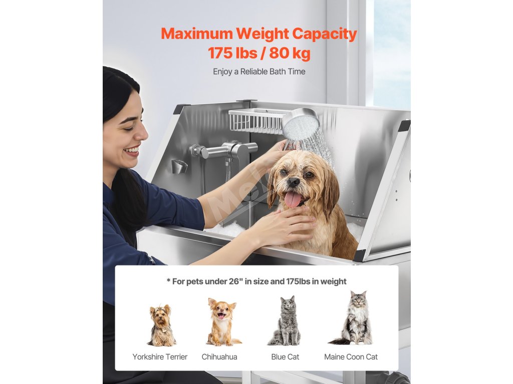 Táto vaňa zaručuje, že voda neuniká. Je vyrobená z nehrdzavejúcej ocele, je odolná voči korózii a robustná, pričom si časom zachová svoj nový vzhľad. Vanička má hladké okraje, ktoré zaisťujú bezpečnosť domácich zvierat aj používateľov počas kúpania.