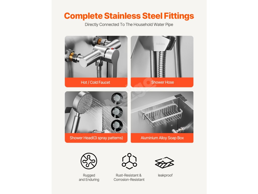 Táto vaňa zaručuje, že voda neuniká. Je vyrobená z nehrdzavejúcej ocele, je odolná voči korózii a robustná, pričom si časom zachová svoj nový vzhľad. Vanička má hladké okraje, ktoré zaisťujú bezpečnosť domácich zvierat aj používateľov počas kúpania.