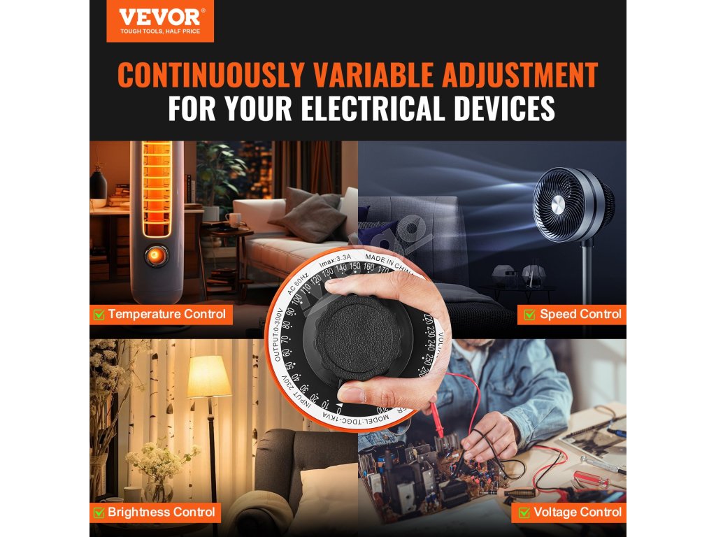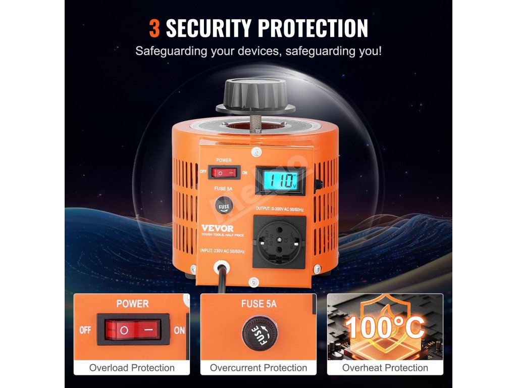 Transformujte napätie s presnosťou a pokojom! Náš transformátor s premenlivým napätím ponúka rozsah nastavenia 0-300 V, poistky, tepelný regulačný spínač, resetovateľnú ochranu proti preťaženiu a certifikát CE, čím poskytuje stabilné napájanie.