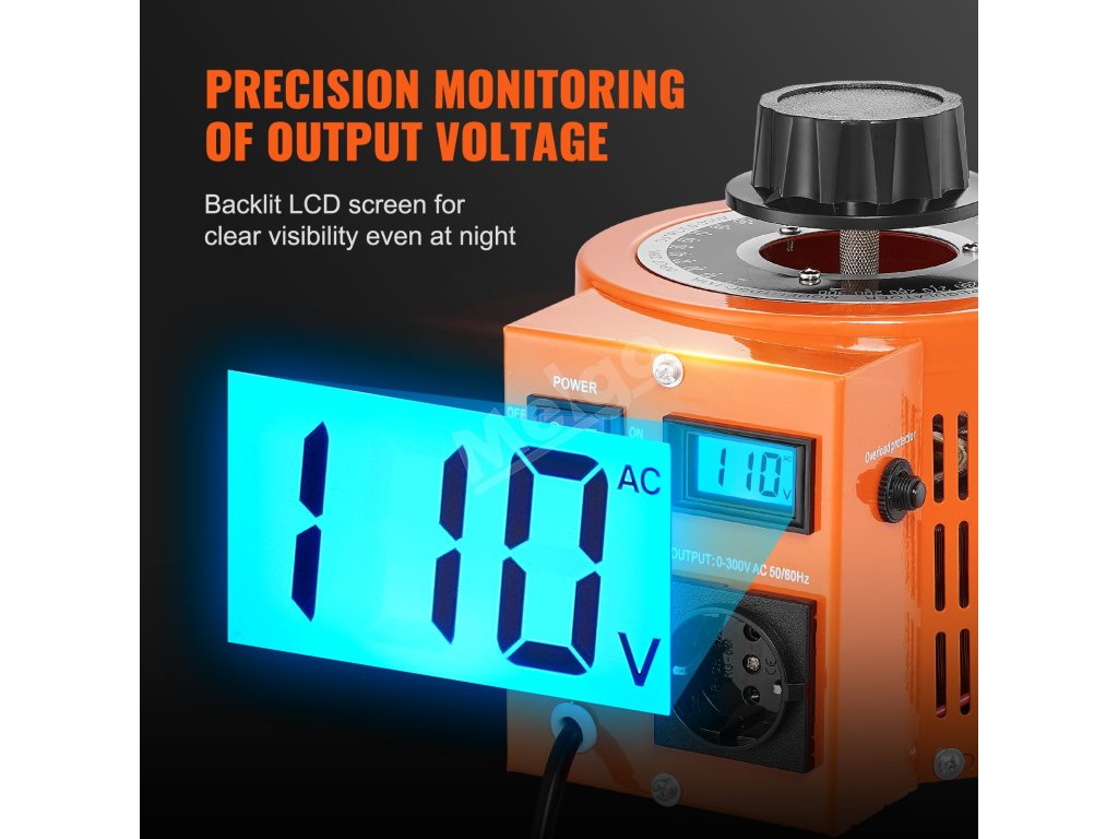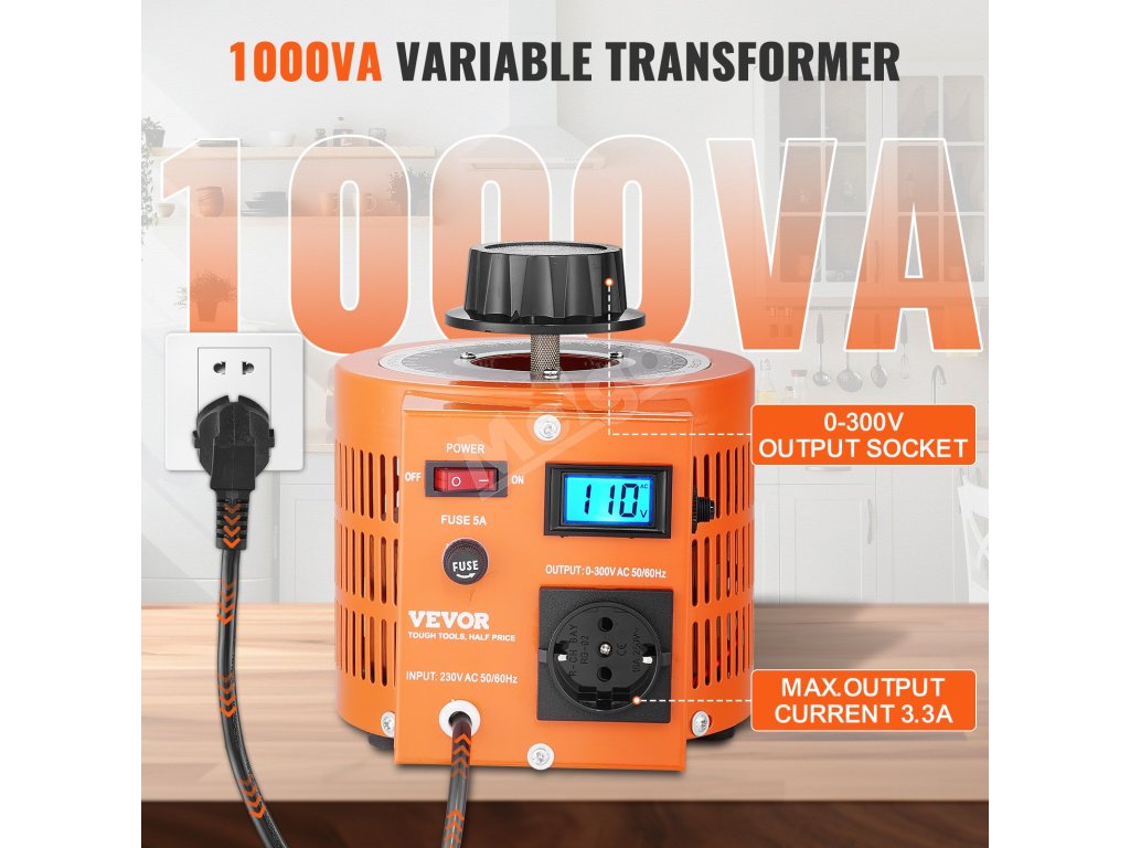 Variabilný transformátor napätia 1000 VA, 230 V→0–300 V, 3.3 Amp, LCD