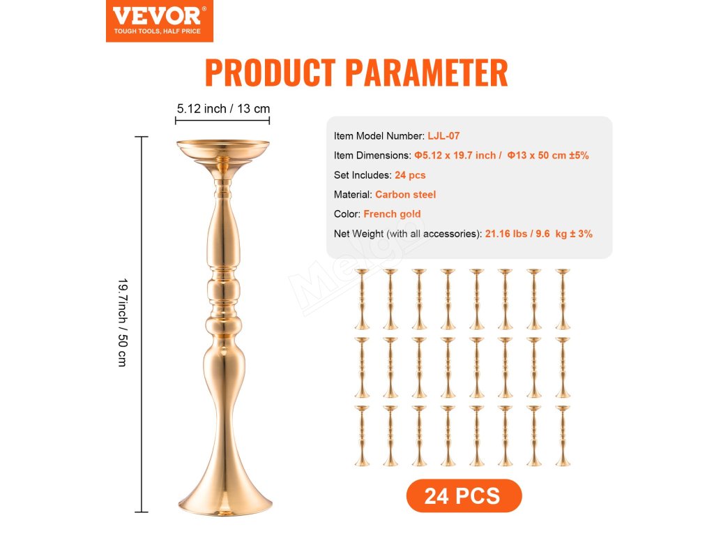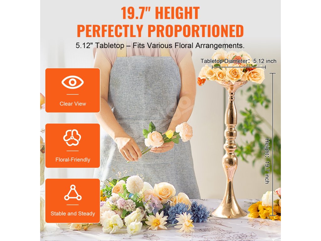 Stojan na kvetinové aranžmány 24 ks, kovový zlatý, 50cm/19.7”