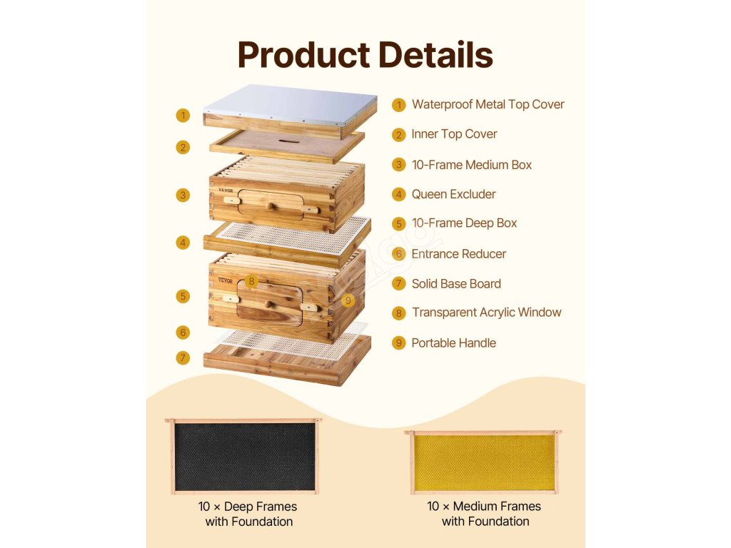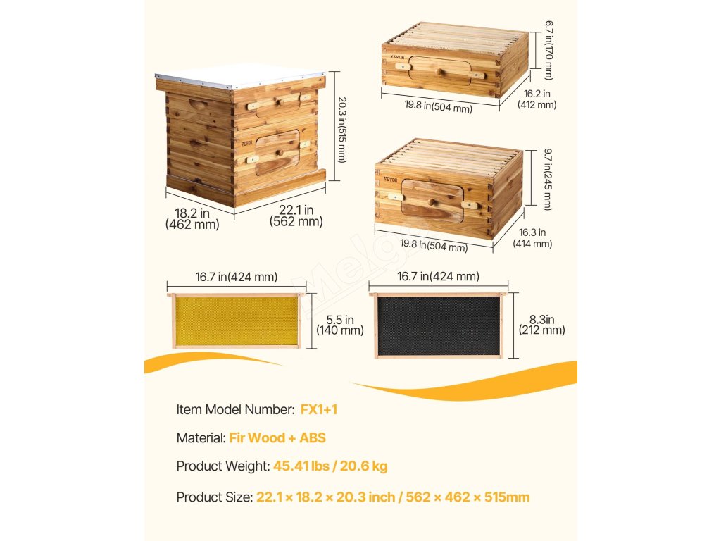 Tento úľ je vyrobený z hrubého cédrového dreva pomocou holubičieho chvosta a má priehľadné okienka pre včely na vetranie a ľahké pozorovanie. Priestranná konštrukcia zabezpečuje zdravie včiel a vyššiu úrodu. Je to ideálna voľba pre vaše včelárske potreby.