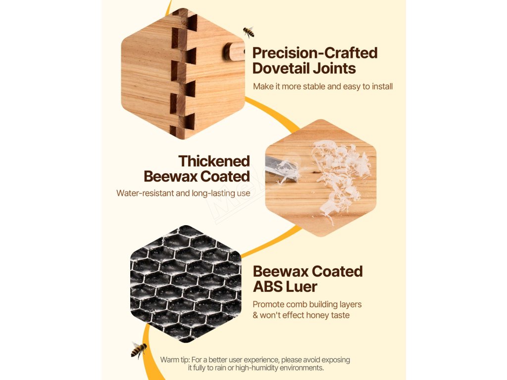 Úle sú navrhnuté s presným holubičím chvostom, ktorý zvyšuje celkovú stabilitu konštrukcie a umožňuje rýchlu a jednoduchú inštaláciu. Podobne ako pri skladaní stavebníc je zostavovanie úľa zábavné a pohodlné, pretože si nevyžaduje žiadne zložité nástroje.