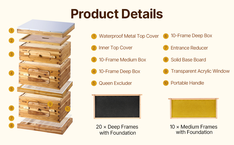 Tento úľ je vyrobený z hrubého jedľového dreva pomocou holubičieho chvosta a má priehľadné okienka pre včely na vetranie a ľahké pozorovanie. Priestranná konštrukcia zabezpečuje zdravie včiel a vyššiu úrodu. Je to ideálna voľba pre vaše včelárske potreby.