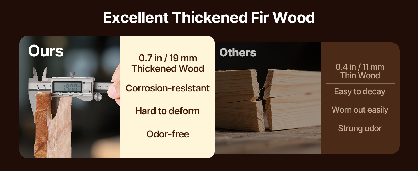 Naše úle sú starostlivo vyrobené z 19 mm hrubého cédrového dreva, čo zaručuje ich odolnosť vo vonkajších podmienkach. Sú skonštruované tak, aby odolali akýmkoľvek poveternostným podmienkam a zachovali si optimálny výkon.