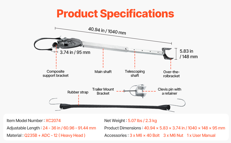 Náš záchranný systém na priečnik je určený pre motory s výkonom do 100 koní a má držiak odolný proti korózii. Dĺžka je nastaviteľná od 24 do 36 palcov. Počas ťahania poskytuje silnú oporu pre motor, znižuje tlak na nosník lode a pomáha predchádzať poškriabaniu a poškodeniu.