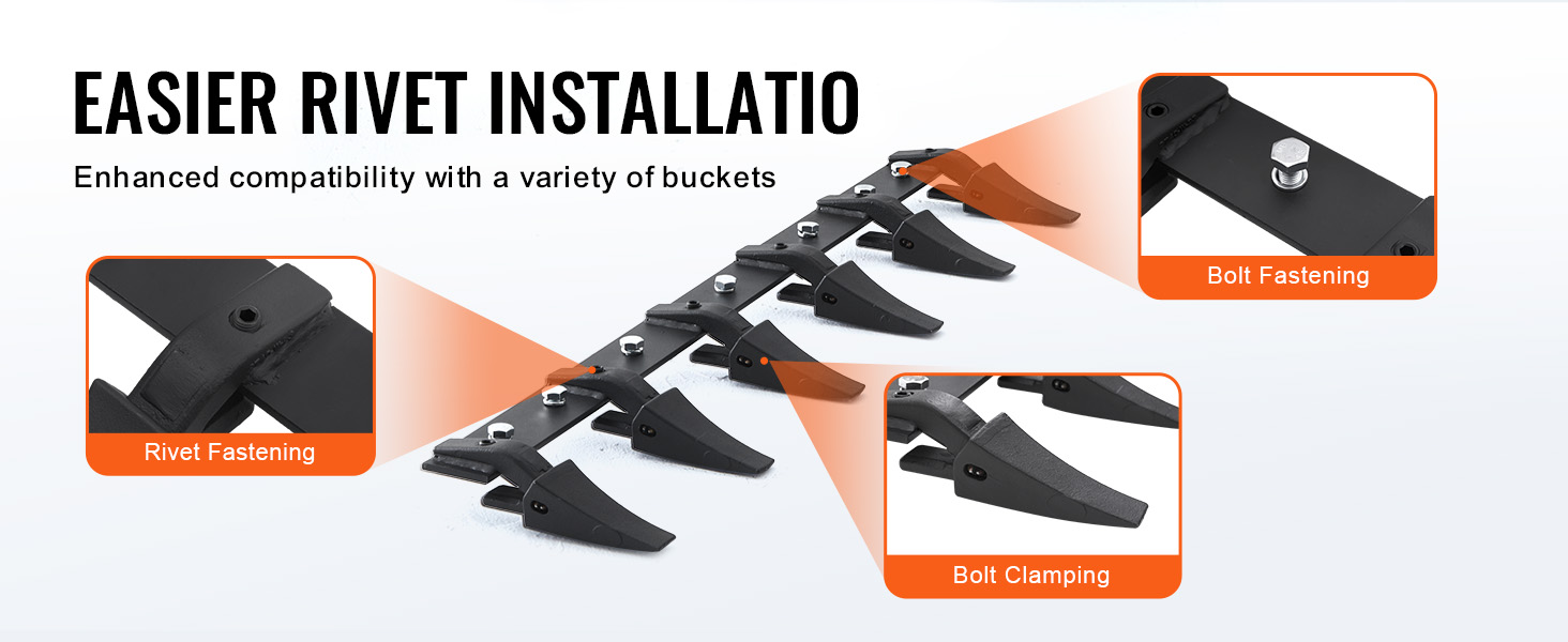 Naša zubová lišta na vedro je navrhnutá na bezproblémové nastavenie prostredníctvom nitového upevnenia a je ďalej vystužená skrutkami. Je kompatibilná s väčšinou typov nakladačov a inovatívna konštrukcia s upínacími skrutkami zabezpečuje bezpečné spojenie s vaším nakladačom bez otrasov.