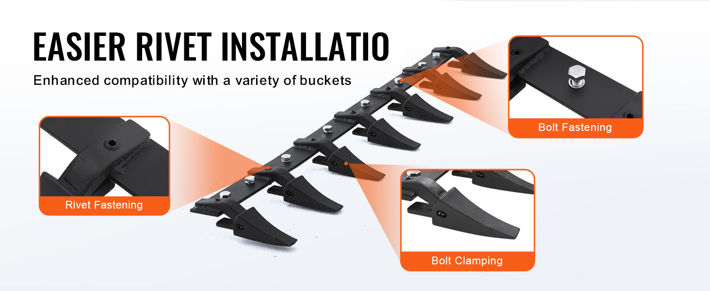 V porovnaní s väčšinou plochých zubových tyčí na vedrách je naša zakrivená stopka navrhnutá tak, aby sa prispôsobila kopaciemu vedru a zabezpečila vynikajúcu účinnosť a minimálnu námahu. S nosnosťou 4560 lbs, aby ste si poradili aj s tými najťažšími prácami pri kopaní a preprave. Pozdvihnite svoju hru na kopanie s našou prelomovou zubovou tyčou na vedro!