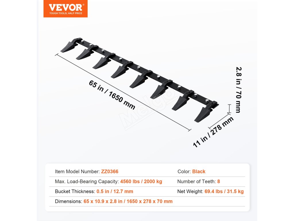 V porovnaní s väčšinou plochých zubových tyčí na vedrách je naša zakrivená stopka navrhnutá tak, aby sa prispôsobila kopaciemu vedru a zabezpečila vynikajúcu účinnosť a minimálnu námahu. S nosnosťou 4560 lbs, aby ste si poradili aj s tými najťažšími prácami pri kopaní a preprave. Pozdvihnite svoju hru na kopanie s našou prelomovou zubovou tyčou na vedro!
