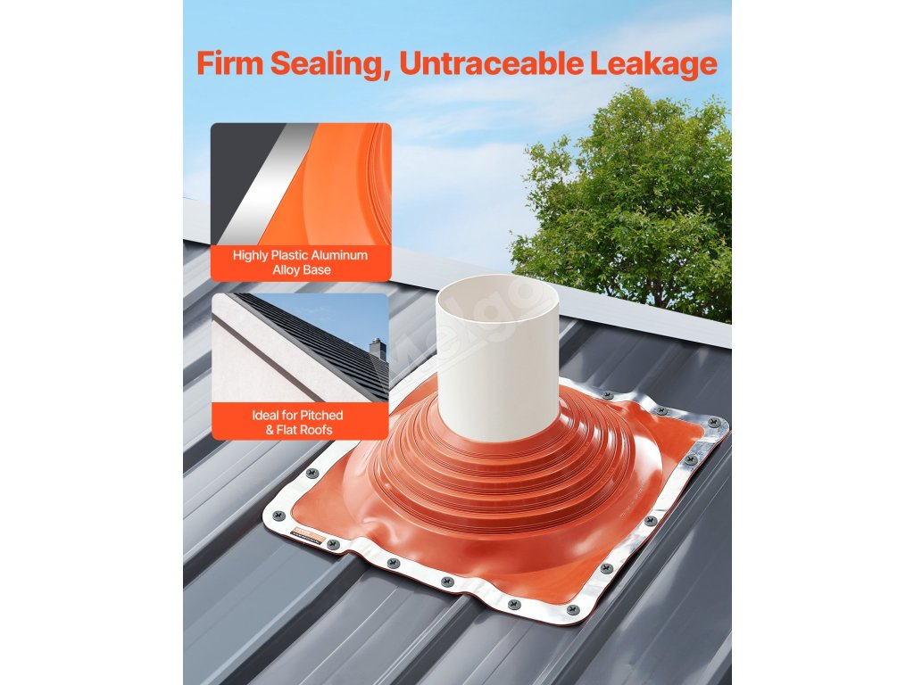 Kovová objímka na strešné potrubie je vyrobená so základňou z hliníkovej zliatiny s hrúbkou 0,6 mm, ktorá je vysoko flexibilná a zabezpečuje tesné priľnutie k vašej streche a potrubiu pre lepší tesniaci výkon!