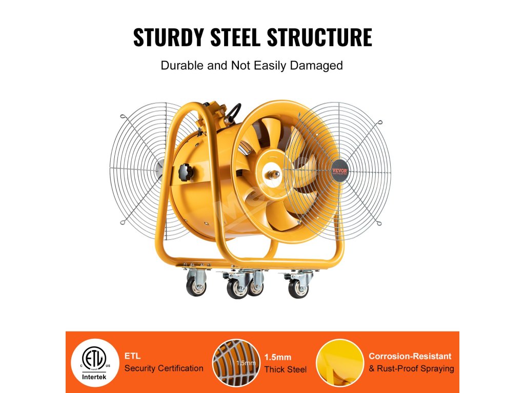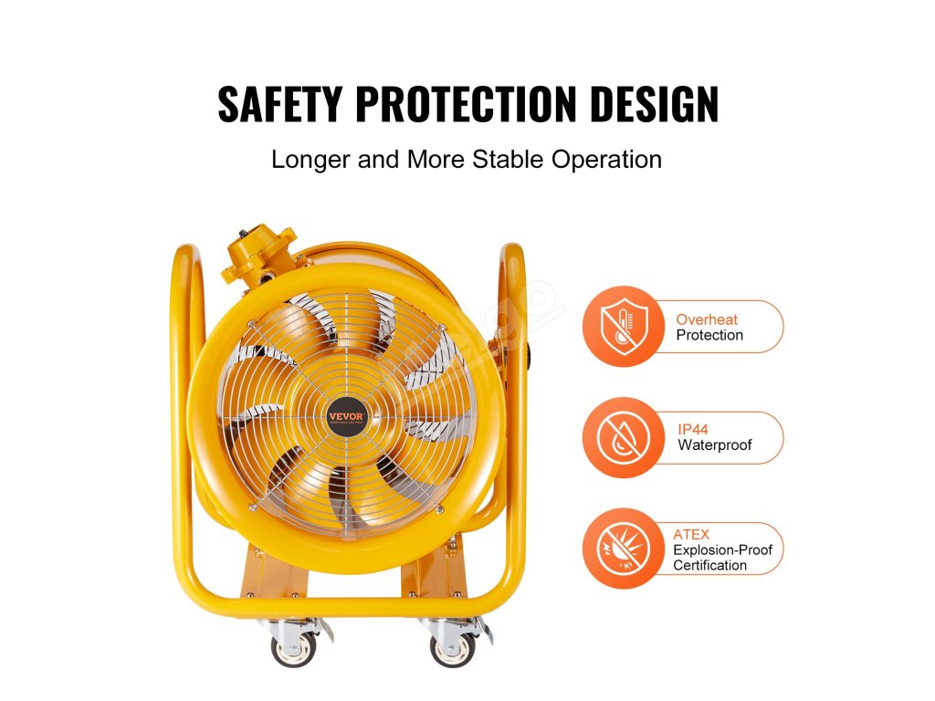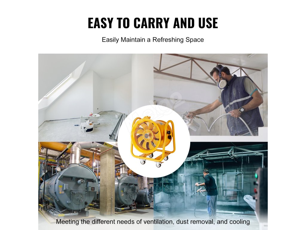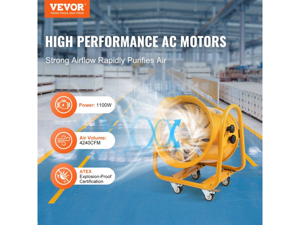 Je vybavený vysoko výkonným motorom na striedavý prúd a účinne rýchlo a dôkladne vyháňa dym, zápach a horúci vzduch. Ideálny pre širokú škálu aplikácií, ako sú sklady, staveniská a továrne. Naše výrobky sú pred odoslaním prísne testované, takže ich môžete používať bez obáv.
