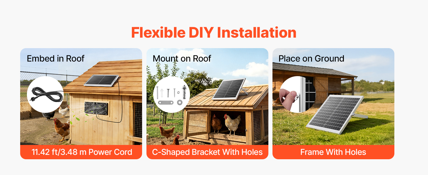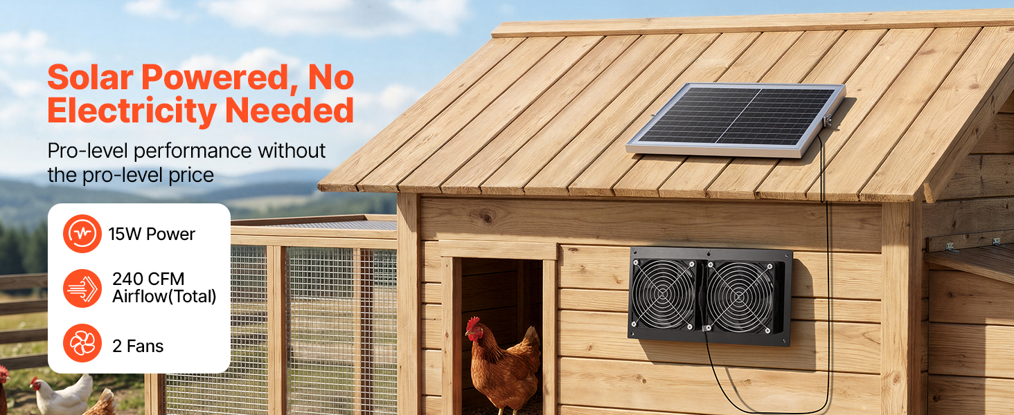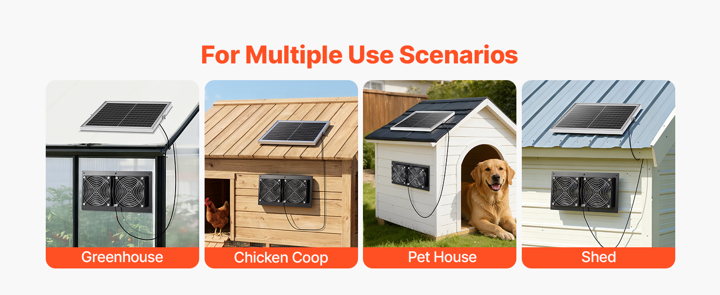 Napájané solárnou energiou bez potreby pripojenia k elektrickej sieti. Vhodné pre skleníky, kurníky a odľahlé oblasti. Pomáha urýchliť výmenu vzduchu v uzavretých alebo polouzavretých priestoroch.