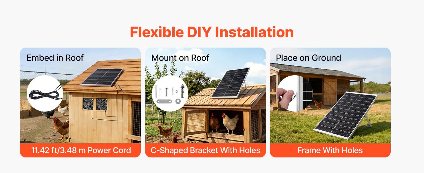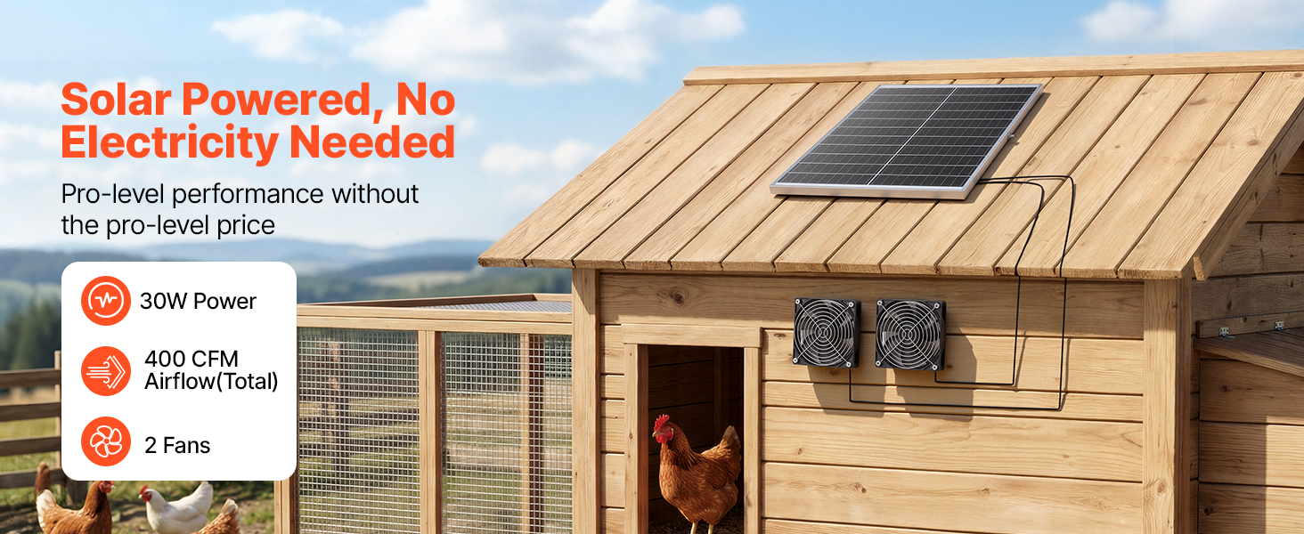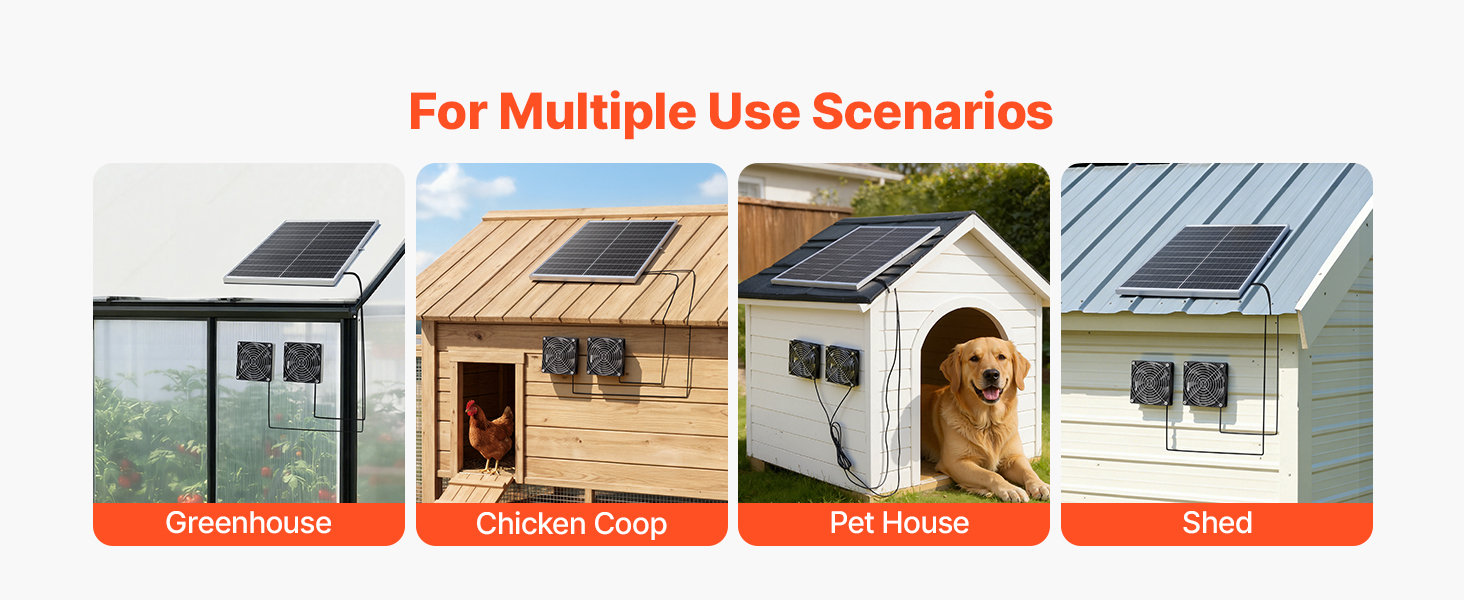 Napájané solárnou energiou bez potreby pripojenia k elektrickej sieti. Vhodné pre skleníky, kurníky a odľahlé oblasti. Pomáha urýchliť výmenu vzduchu v uzavretých alebo polouzavretých priestoroch.