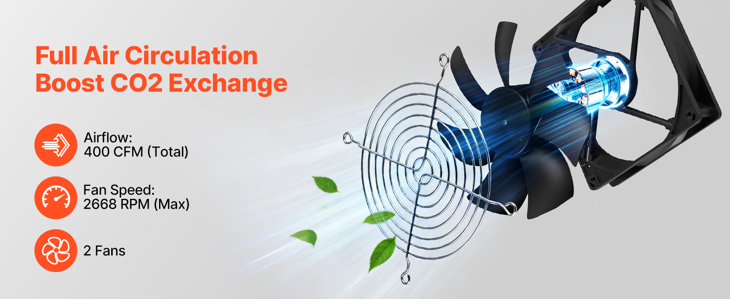 Koordinovaná prevádzka ventilátorov vytvára stabilný a rovnomerný prúd vzduchu. Otáčky až 2668 ot/min pomáhajú znižovať hromadenie stagnujúceho horúceho vzduchu a podporujú pohodlnejšie prostredie pre pestovanie.