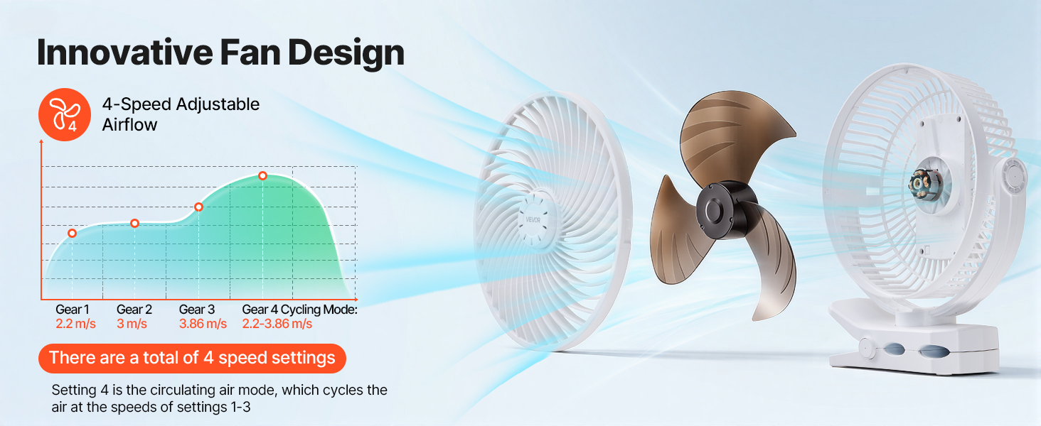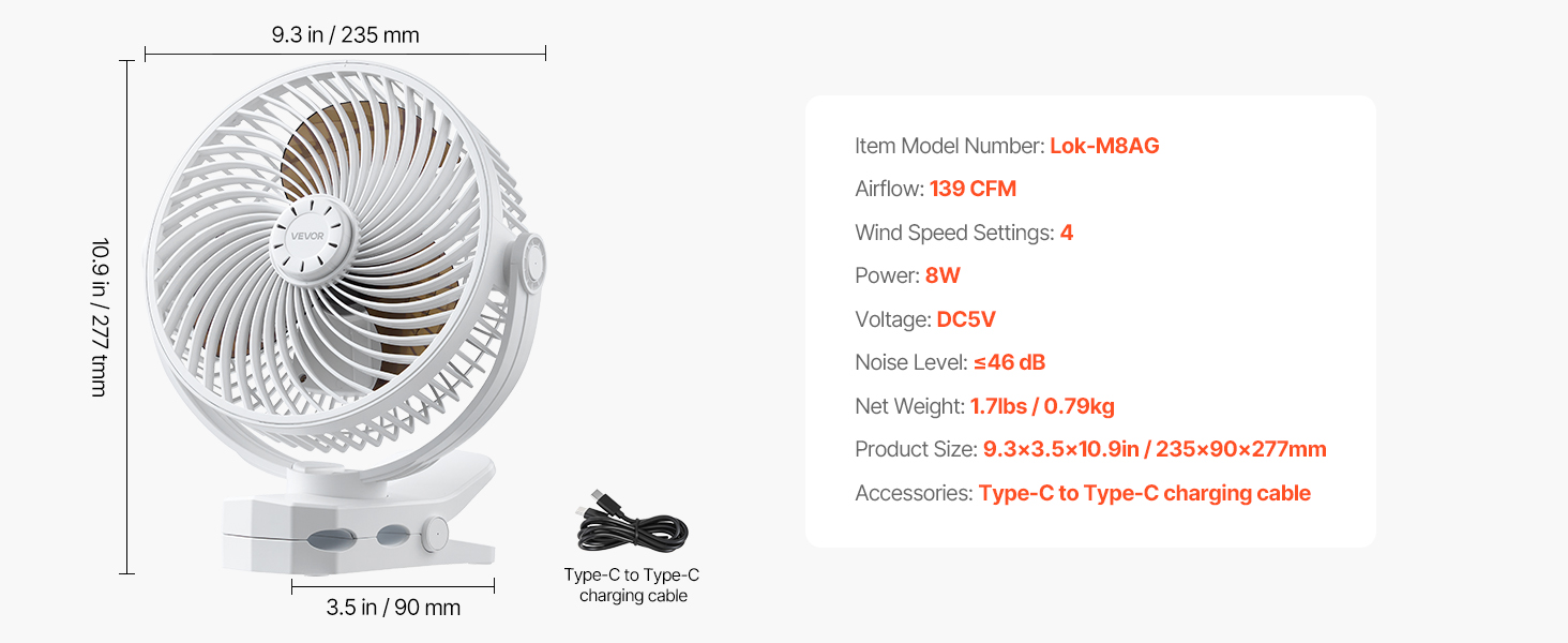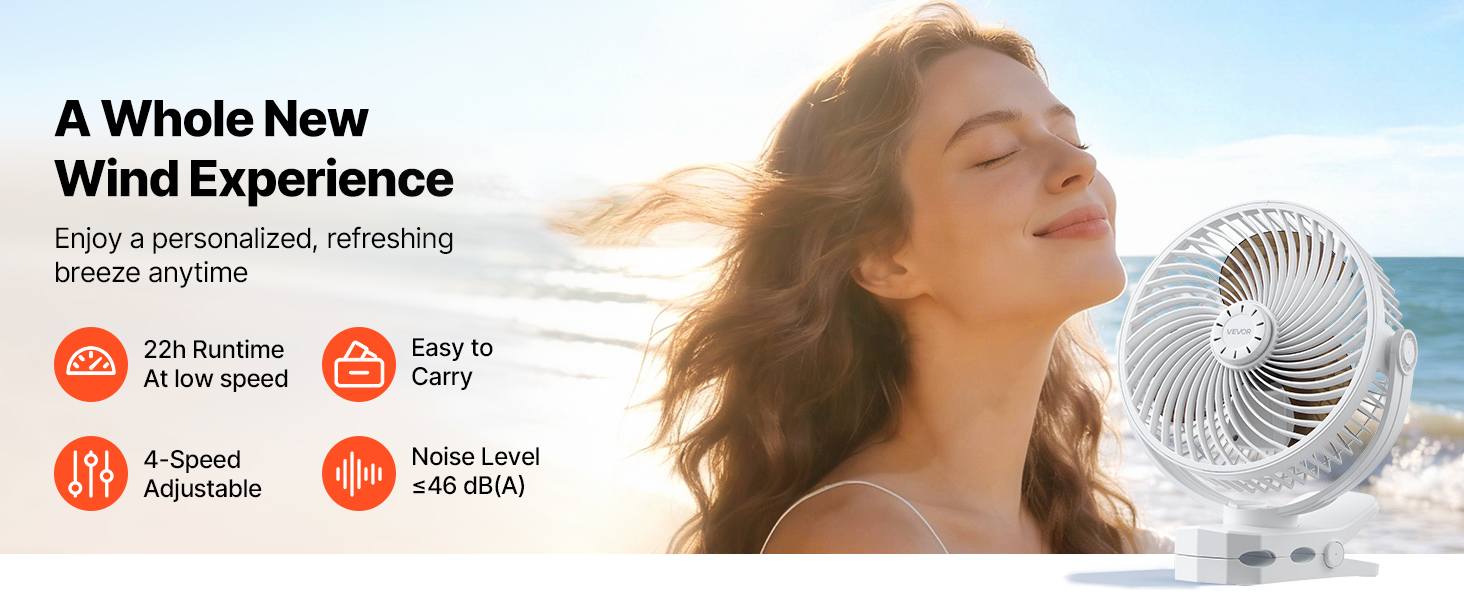Tento prenosný ventilátor s klipom, navrhnutý pre moderný životný štýl, sa ľahko pripevní na stôl, nočný stolík, bežecký pás alebo okraj stanu. Ako univerzálny ventilátor s klipom na stôl alebo bežecký pás poskytuje cielený prúd vzduchu na štúdium, spánok, cvičenie a každodenné použitie.