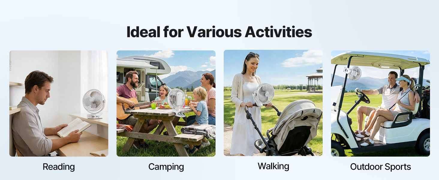 Silná svorka sa bezpečne pripevní k stolu, rámu postele, fitness zariadeniam alebo tyčiam stanu. Vďaka ABS puzdru sa tieto ventilátory s klipom ľahko používajú doma, v posilňovni alebo vonku, pričom kompaktný dizajn šetrí miesto na uskladnenie.