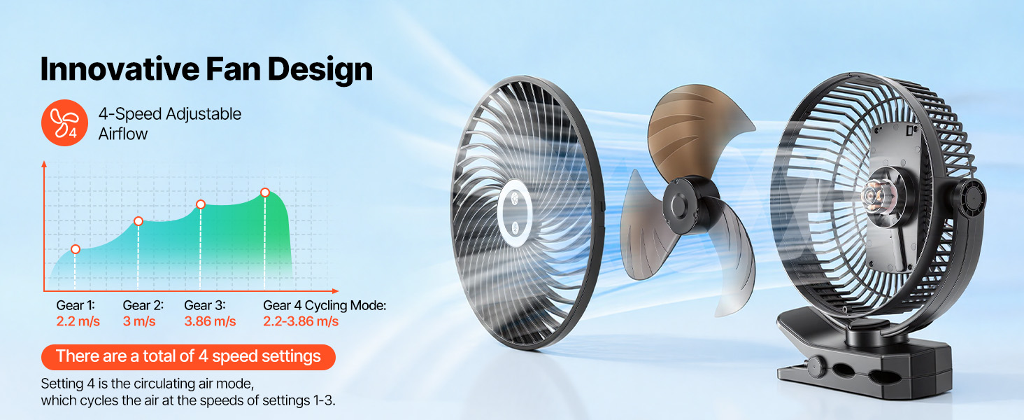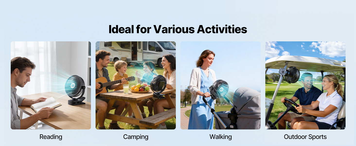 Silná svorka sa bezpečne pripevní k stolu, rámu postele, fitness zariadeniam alebo tyčiam stanu. Vďaka ABS puzdru sa tieto ventilátory s klipom ľahko používajú doma, v posilňovni alebo vonku, pričom kompaktný dizajn šetrí miesto na uskladnenie.