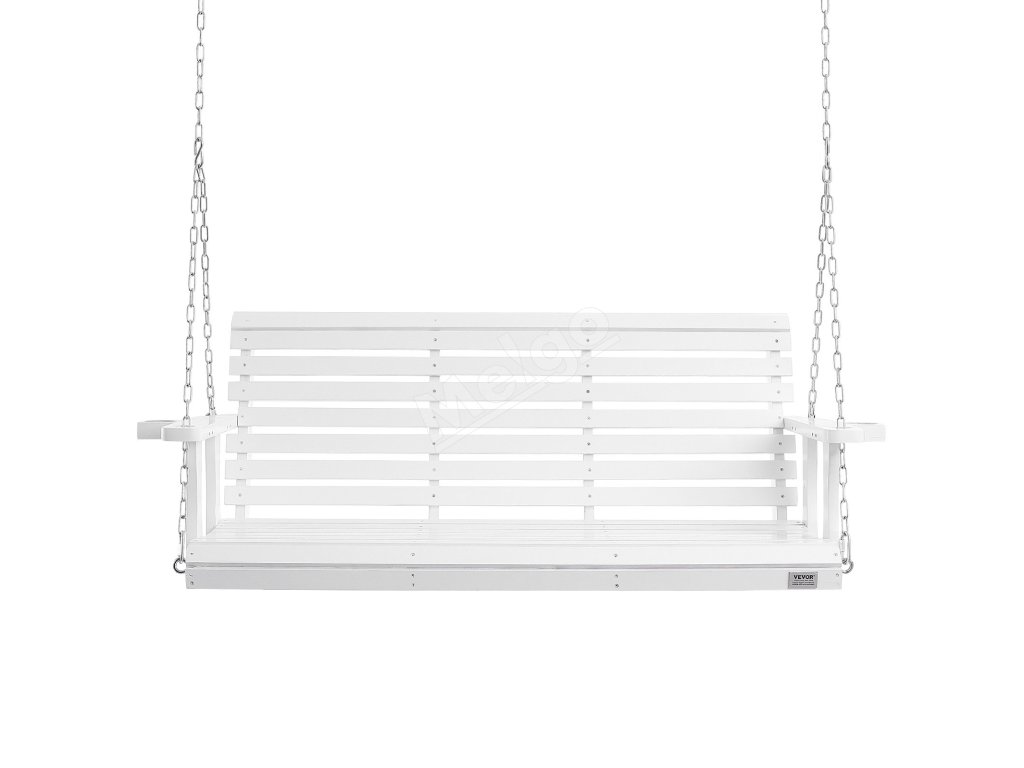 Drevená verandová hojdačka 5.5 ft, nosnosť 880 lbs, s reťazami, biela