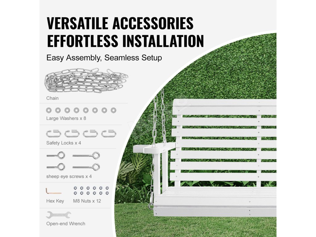 Montáž drevenej verandovej hojdačky VEVOR je jednoduchá. Všetok potrebný hardvér a reťaze sú súčasťou balenia. Reťaze sú odolné, čo zvyšuje celkovú pevnosť hojdačky. Vďaka jasným pokynom ju rýchlo zostavíte. Aj bez podrobného návodu je proces montáže intuitívny. Vďaka tomu ju môže pohodlne zostaviť každý. Jej jednoduchá montáž znamená, že si hojdačku užijete skôr. Pevné a spoľahlivé reťaze zaisťujú bezpečnosť používania. Dôverujte kvalite dodávaných materiálov.
