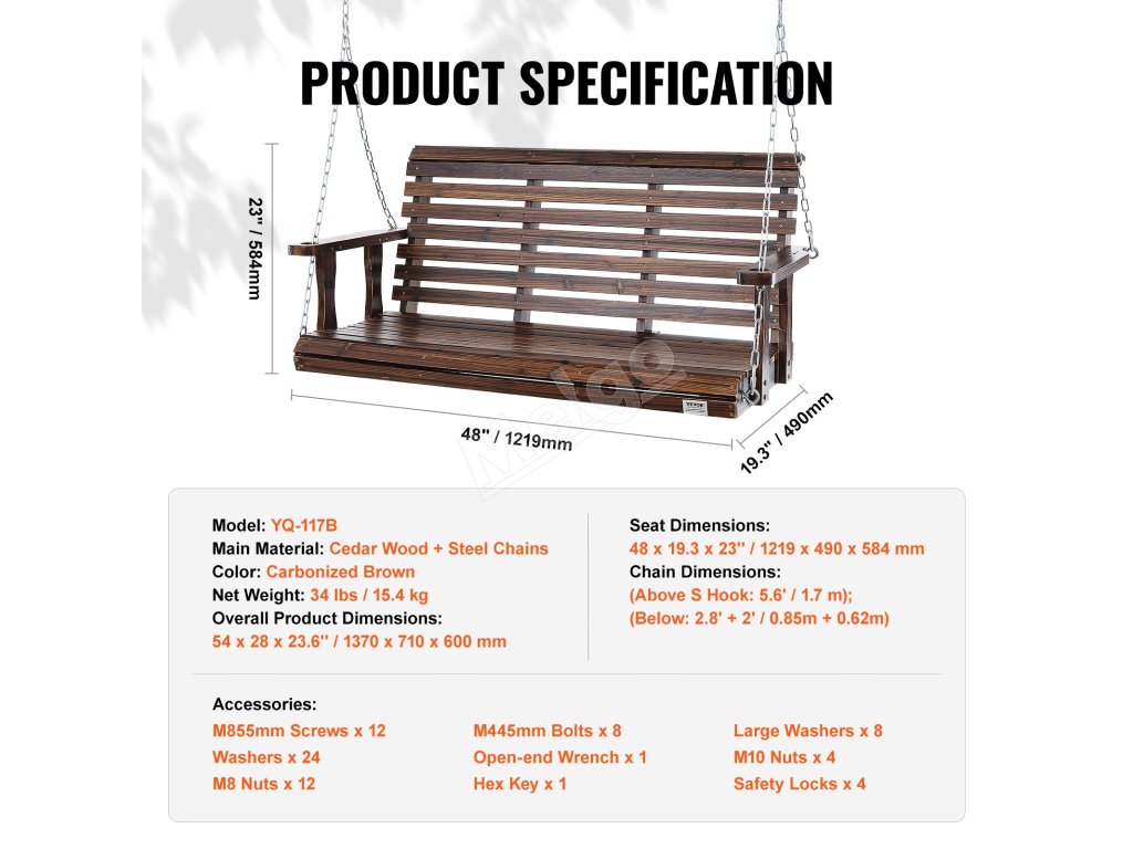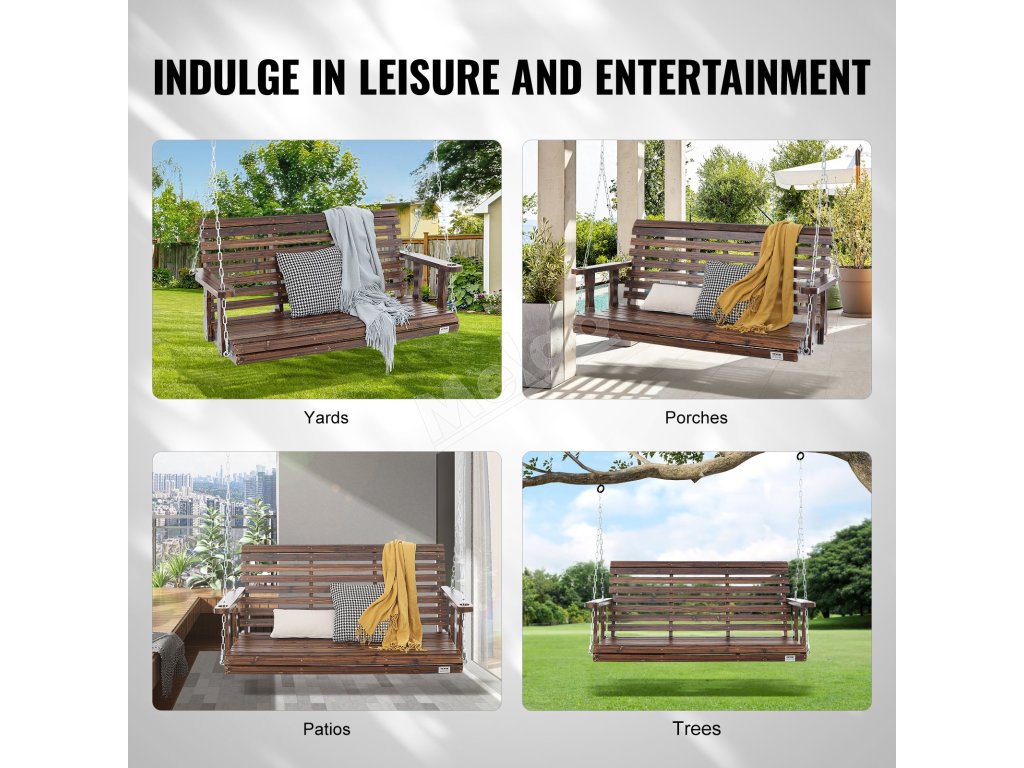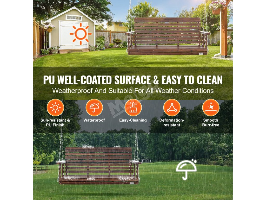Čisté jedľové drevo, trojitý PU náter na ochranu proti vode, naša verandová hojdačka je podopretá oceľovými reťazami pre bezpečnosť a stabilitu. Jednoduchá inštalácia s rôznym príslušenstvom vám umožní rýchlo ju postaviť na vašom dvore, verande alebo terase. Príďte a začnite svoju radostnú cestu!