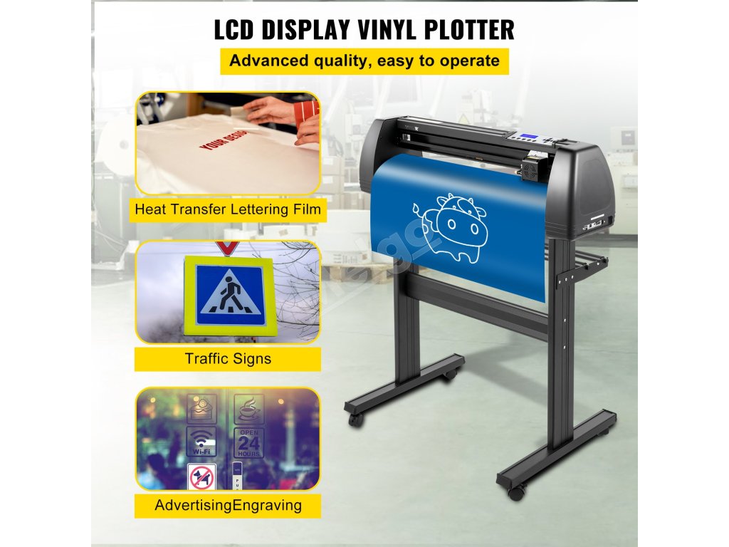 Tento vinylový plotter má vysokú kompatibilitu, pretože dokáže pracovať s rôznymi softvérmi, ako sú Signmaster, Signcut a Flexi. LCD displej vám pomáha obsluhovať stroj jasne a ľahko. Rýchlosť a silu môžete nastaviť pomocou vysoko kvalitných nastaviteľných dvojitých pružinových valcov. Maximálna šírka podávania: 28,3 palca / 720 mm; maximálna šírka rezania: 24,8 palca / 630 mm.