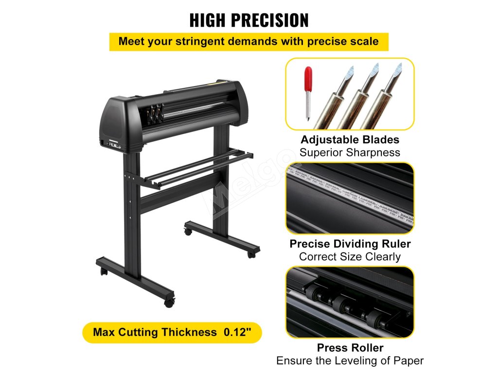 Maximálna hrúbka rezu: 0,12 palca / 3 mm; presnosť rezu: ±0,0004 palca / ±0,01 mm. Dôvodom je, že dve vymeniteľné čepele a presné deliace pravítko v našom plotrovom rezači vinylov sú neuveriteľne ostré a presné.