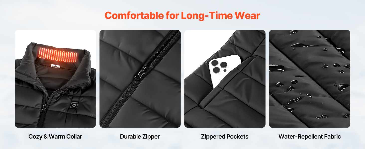 Táto vyhrievaná vesta má 8 vyhrievacích zón a 3 stupne regulácie teploty. Jej mäkká tkanina zaručuje pohodlné priliehanie a dizajn, ktorý sa dá prať v práčke, sa ľahko čistí a udrží vás v teple aj v zime.