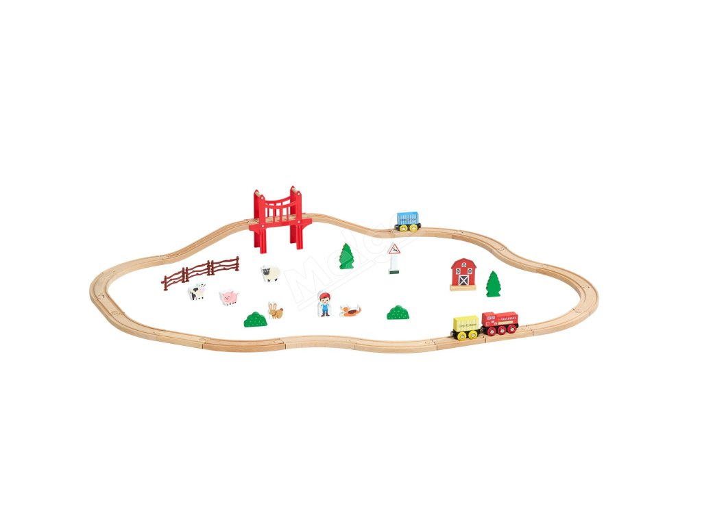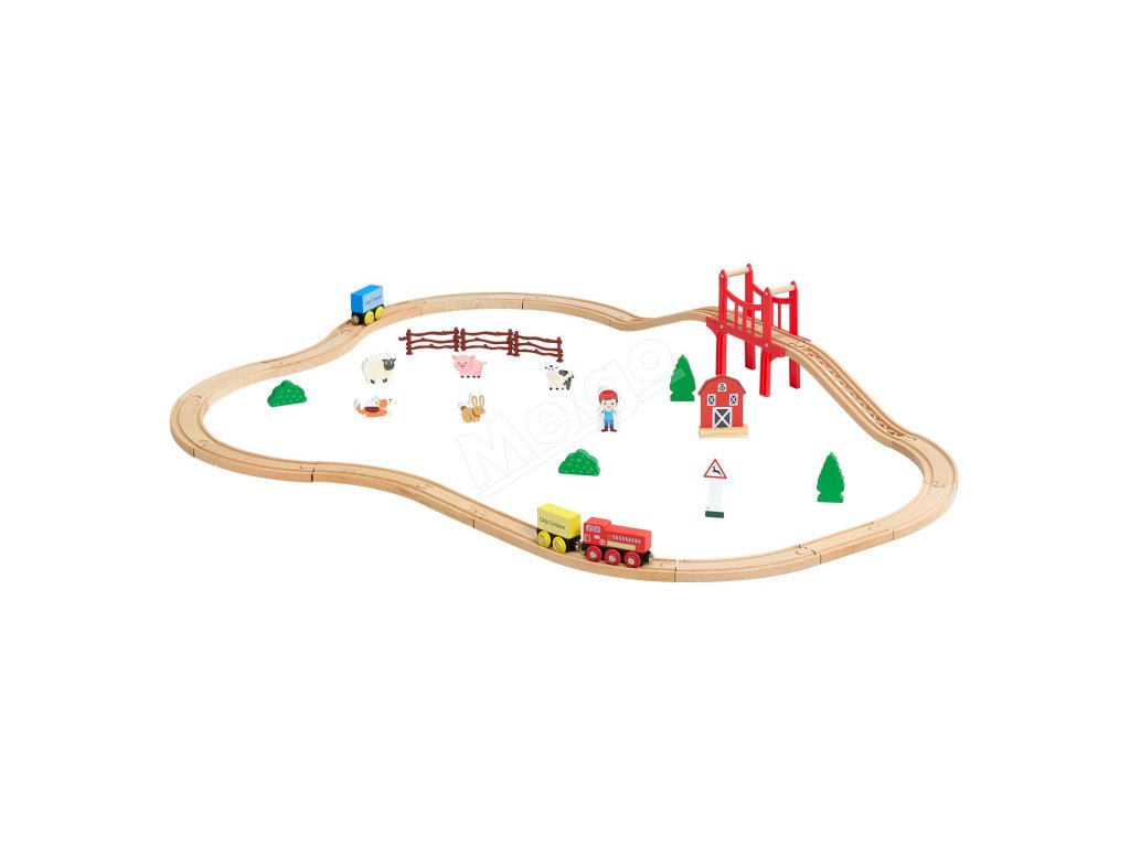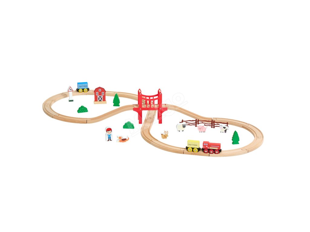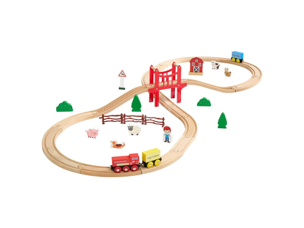 Drevená vláčiková sada 39 ks s magnetickými vláčikmi a doplnkami