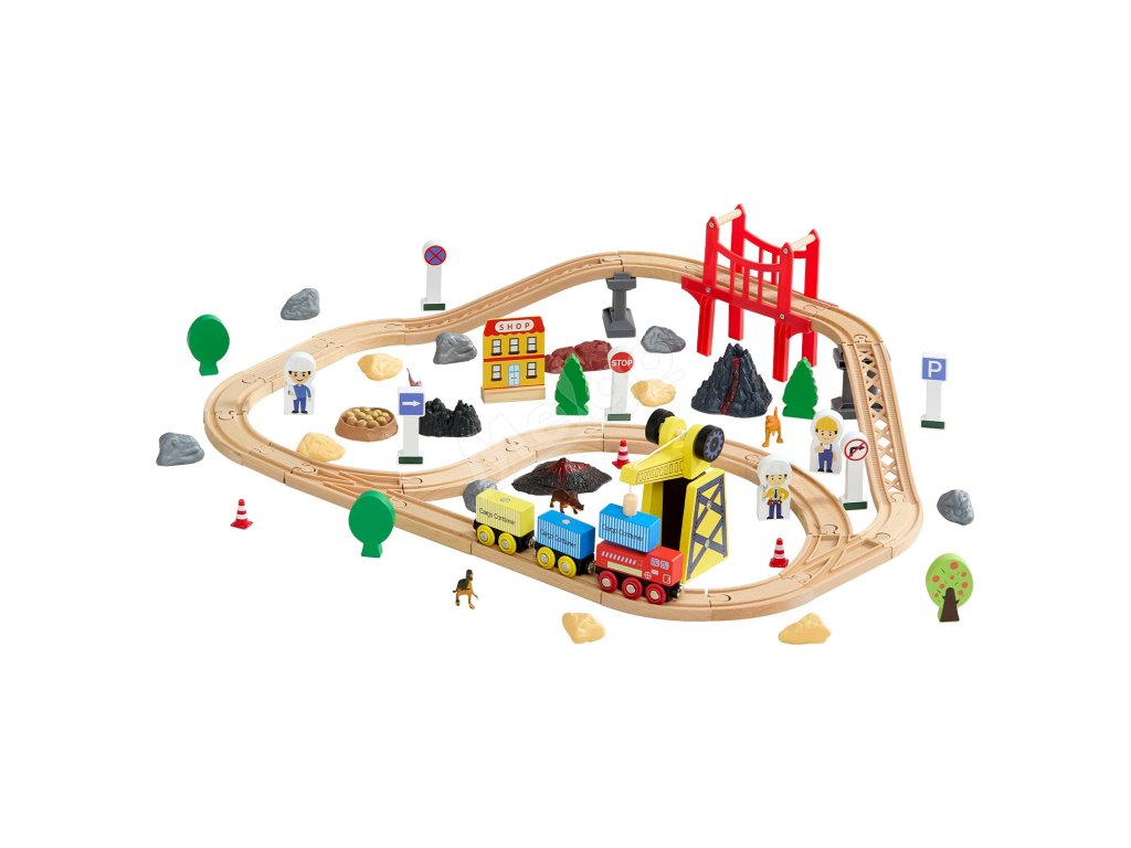 Drevená vláčiková súprava 70 ks s magnetickým žeriavom pre 3–8 rokov