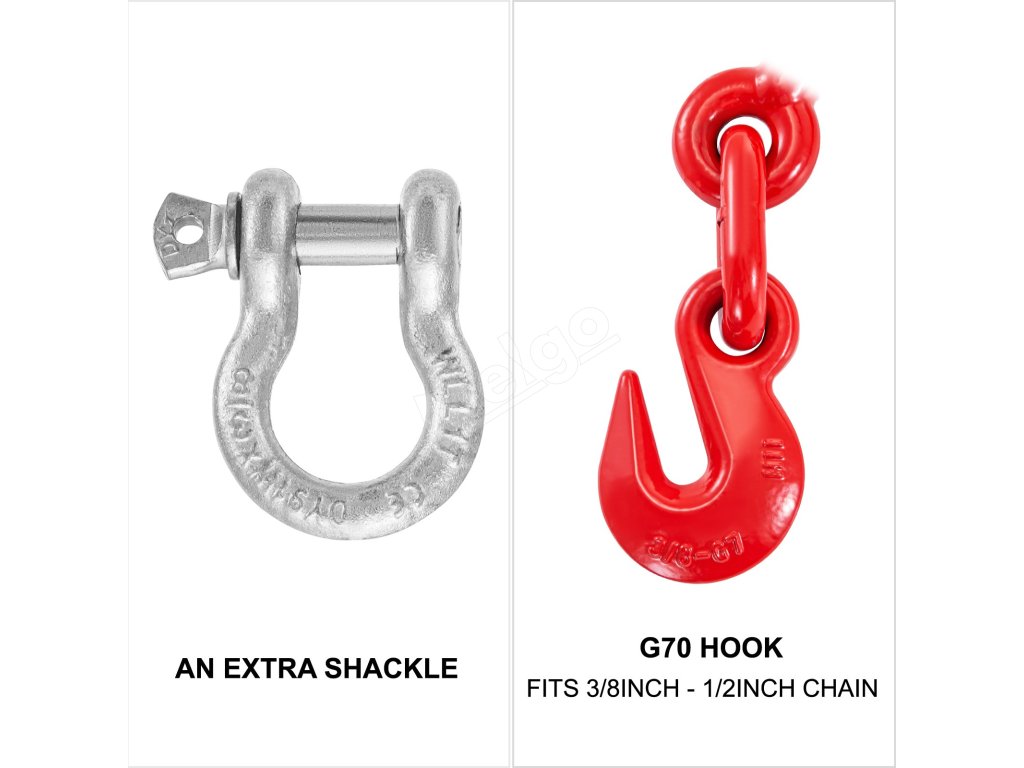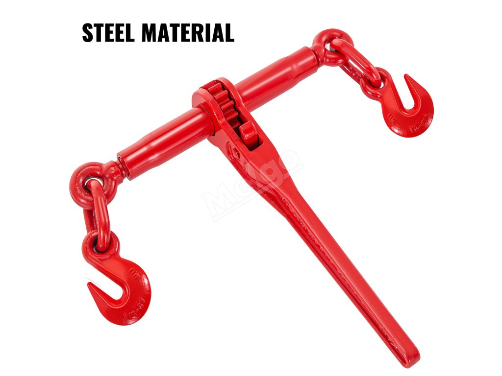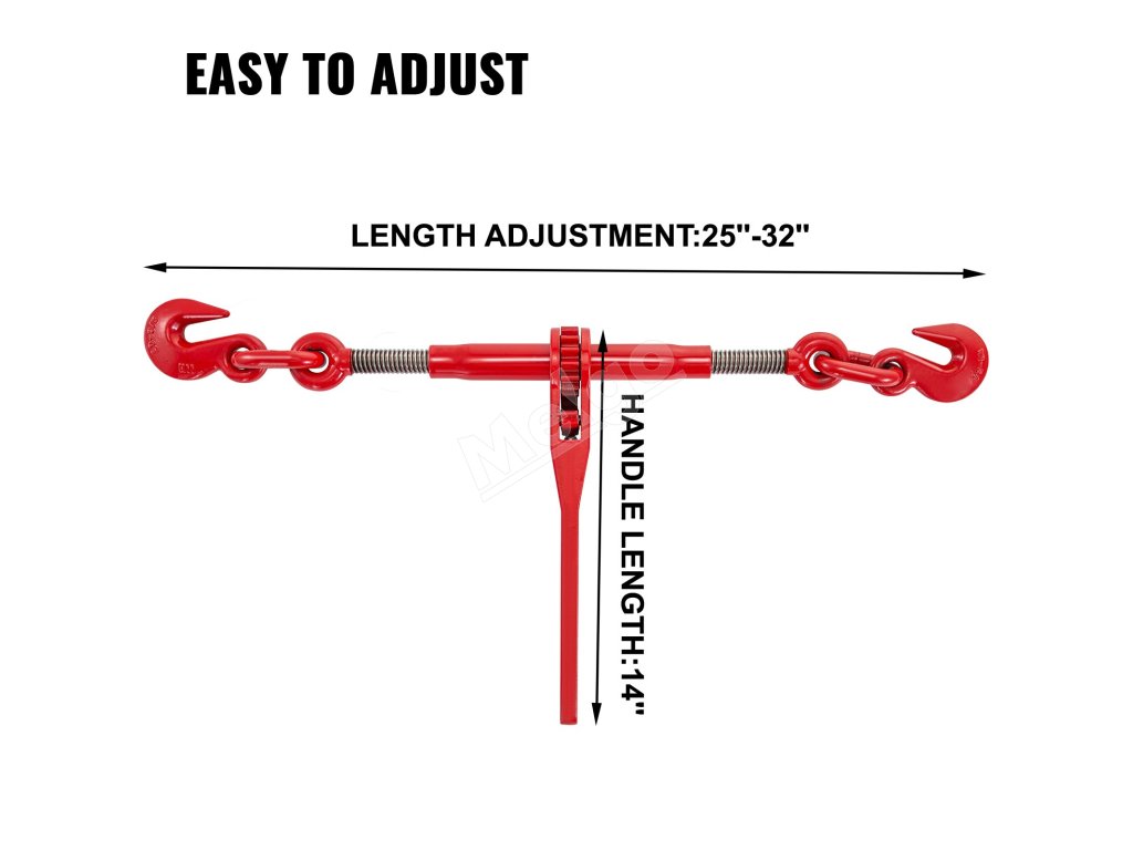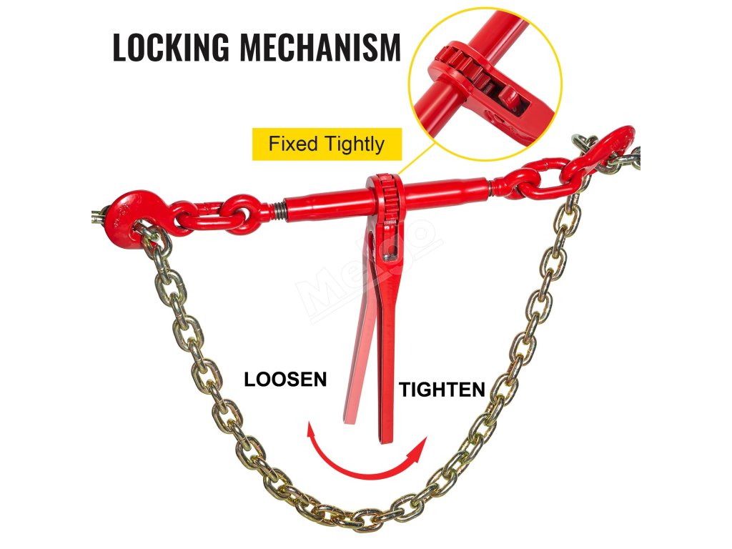 Viazacie prostriedky na bezpečné pracovné bremeno VEVOR majú užívateľsky prívetivé funkcie, ktoré vám uľahčia prácu. Obsahujú dva háky G70 na každom konci, ktoré sú kompatibilné s reťazami od 3/8" do 1/2". Nastaviteľná dĺžka od 25 do 32 palcov zvyšuje všestrannosť. Táto funkcia vám umožňuje dosiahnuť ideálne napnutie, čím zaručuje bezpečnosť vášho nákladu. Zaistenie bezpečnosti všetkého je veľmi dôležité. Ráčnový mechanizmus sa jednoducho ovláda, vďaka čomu sú tieto viazače užívateľsky prívetivé. Zahrnutie prídavného oková v balení zvyšuje ich funkčnosť. Šírku hákov môžete nastaviť manuálne. Tieto funkcie zabezpečujú, že viazač môžete používať efektívne a účinne.