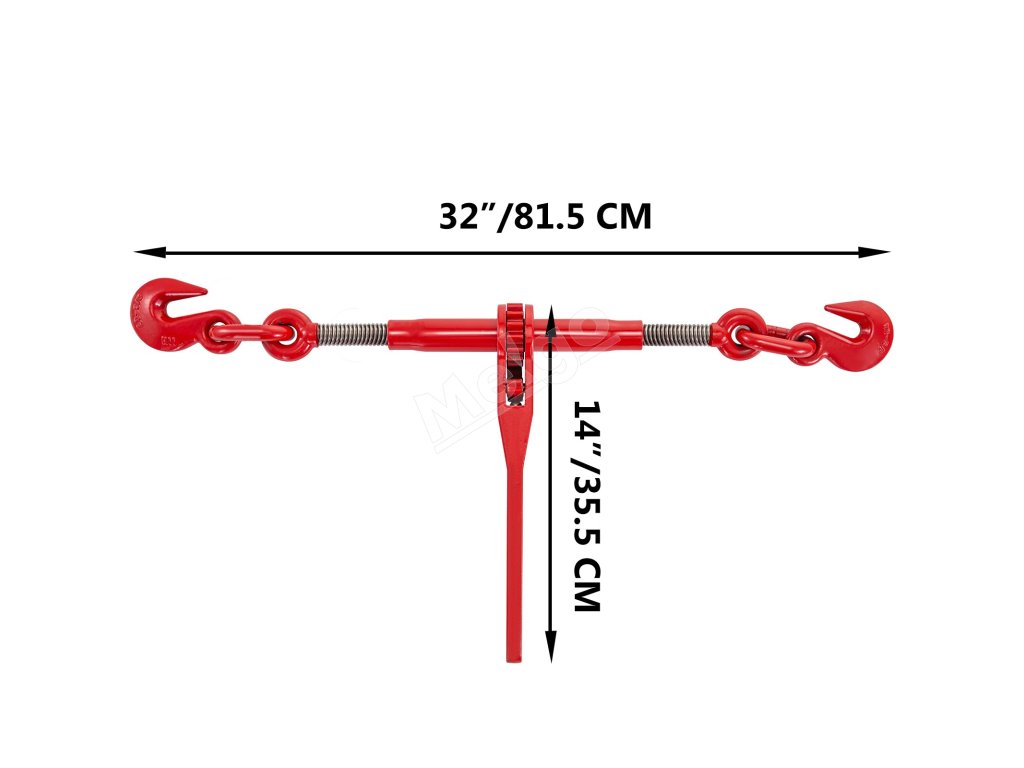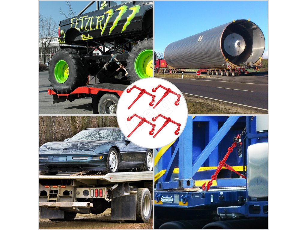 Ráčnový napínač reťaze 3/8in-1/2in, 9215lbs, g70 háky, 4 ks, červený