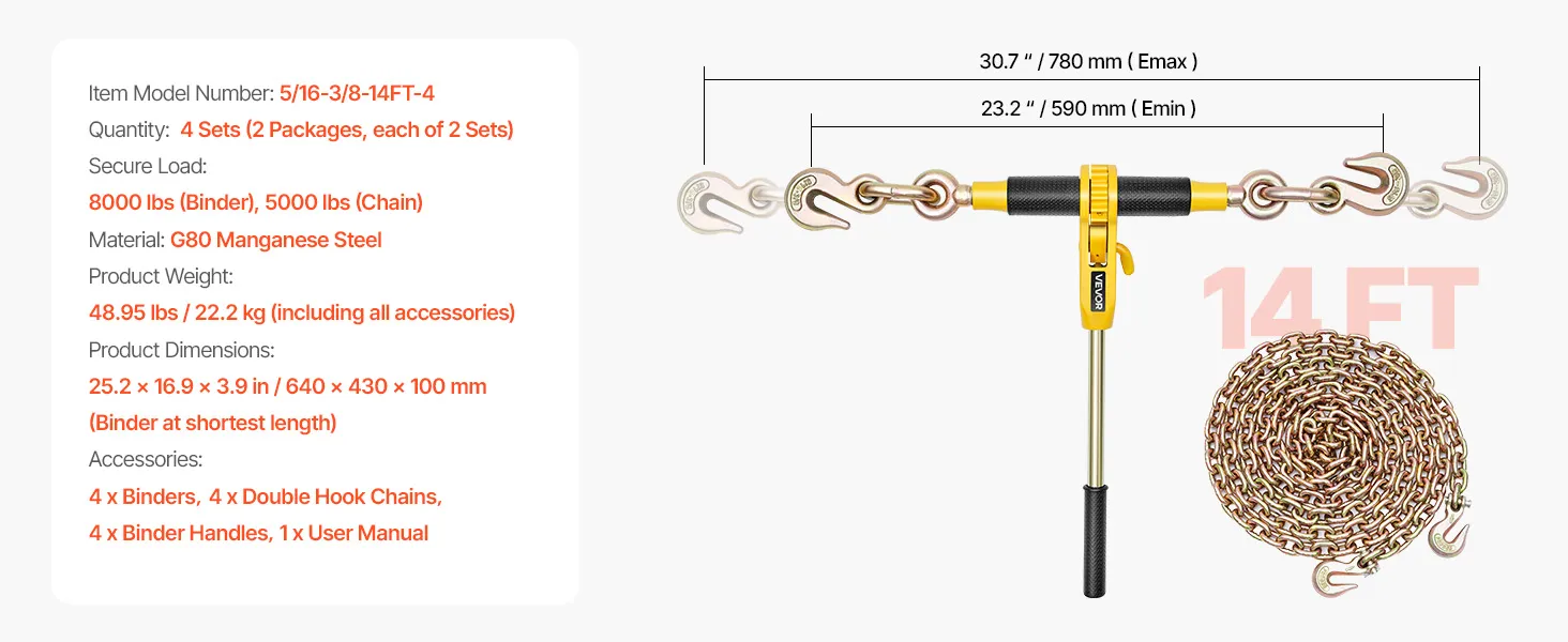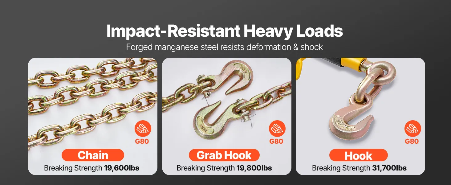 | Bezpečné zaťaženie | 8000 lbs (viazač), 5000 lbs (reťaz) |