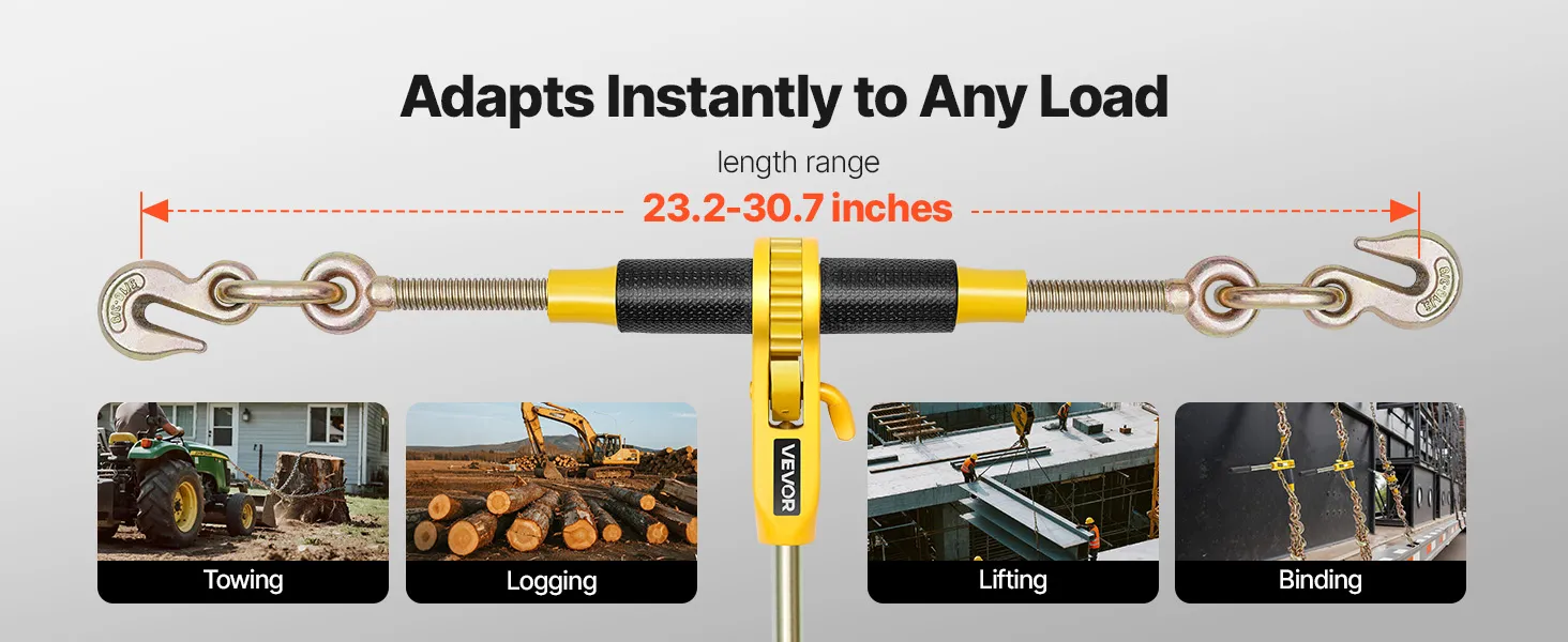 Odpoveď: Nastavuje sa od 23,2 palca (min.) do 30,7 palca (max.). Vhodný pre reťaze s priemerom 5/16 až 3/8 palca - ideálny na ťažbu dreva, viazanie a prepravu.