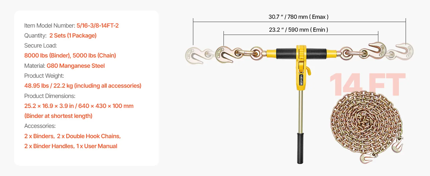| Bezpečné zaťaženie | 8000 lbs (viazač), 5000 lbs (reťaz) |
