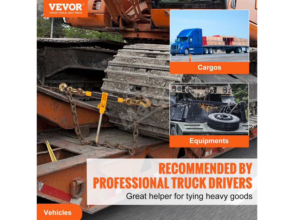 Ráčnový viazač reťaze VEVOR je vyrobený na manipuláciu s ťažkými bremenami. Je vyrobený zo 45# liatej ocele. To zaručuje odolnosť. Môžete ním zaistiť až 7 100 kg, takže je ideálny na náročné práce. Viazač je vybavený hákmi G80, ktoré sú pevné a spoľahlivé. Tieto háky zakaždým zabezpečia bezpečné spojenie. Či už ťaháte traktory alebo iné ťažké zariadenia, tento viazač svoju úlohu zvládne. Vďaka svojej robustnej konštrukcii je spoľahlivým nástrojom na akúkoľvek ťažkú úlohu. Jednoduchý a bezpečný uťahovací mechanizmus umožňuje ľahké zaistenie pevnosti. Váš náklad tak zostane počas prepravy pevne na mieste. Tieto viazače sú vďaka svojej úžasnej pevnosti nevyhnutným doplnkom bezpečných prepravníkov.