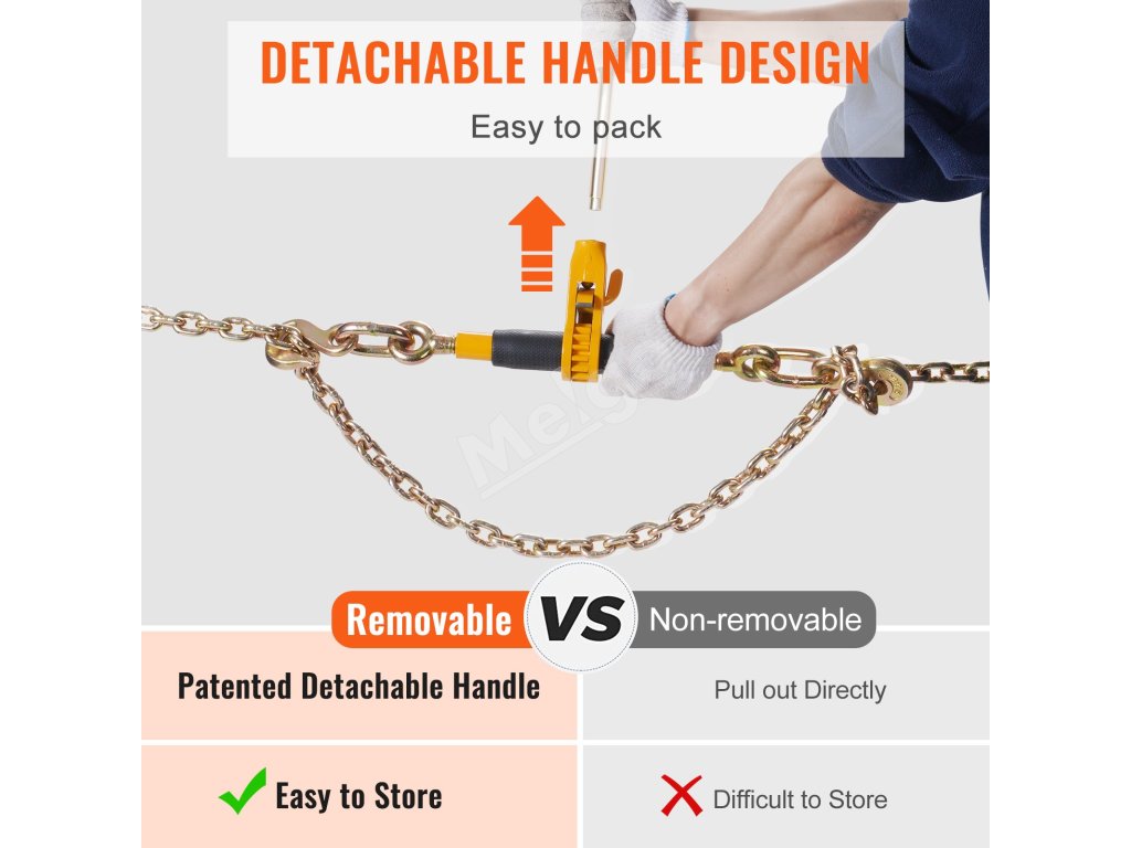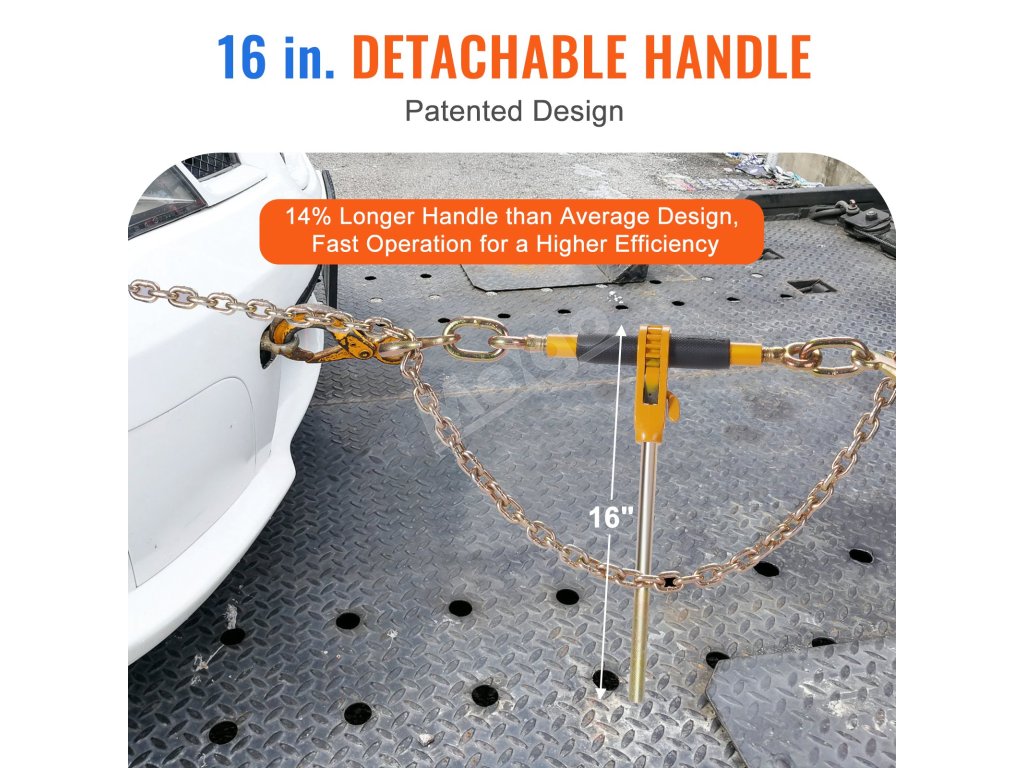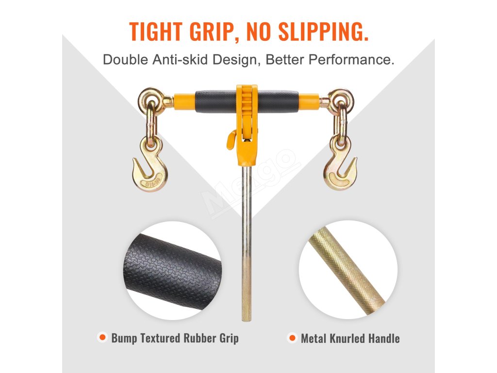 Toto je reťazový viazač VEVOR s račňou navrhnutý na jednoduché používanie. Protišmyková rukoväť zaisťuje pevné uchopenie, vďaka čomu je ovládanie bezproblémové. Je tiež nápomocná pre bezpečnosť a efektívnosť. Konštrukcia: Vhodné na použitie s reťazou, ktorá sa používa na výrobu reťazí: Dĺžka rukoväte 15 palcov poskytuje dobrú páku. Ľahko tak zaistíte ťažké bremená bez väčšej námahy. Jednoduché používanie: Zabezpečením nákladu strávite menej času. Vďaka používateľsky prívetivému dizajnu tohto viazača ho môže používať ktokoľvek! Ergonomický dizajn znižuje únavu rúk. Preto môžete s týmto náradím pracovať dlhší čas. Protišmykové rukoväte zvyšujú použiteľnosť.