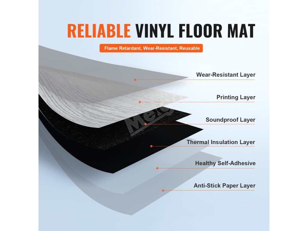 Vinylová podlaha je jednoduchá a ľahko inštalovateľná možnosť, ktorá dodá vášmu obytnému priestoru živosť. Vďaka svojej odolnej konštrukcii odoláva opotrebovaniu, čo zaručuje dlhú životnosť. Jej vodoodolný povrch sa ľahko čistí, takže je ideálnou voľbou na dekoráciu domácnosti aj renováciu kancelárie.