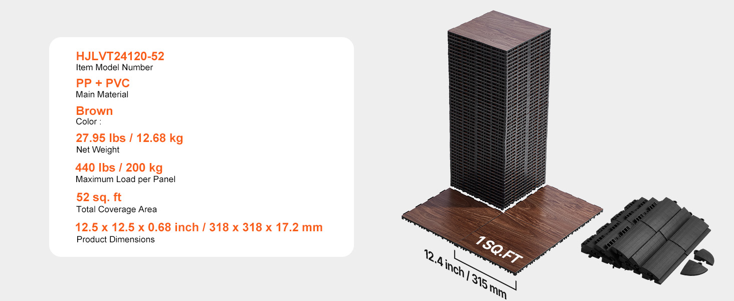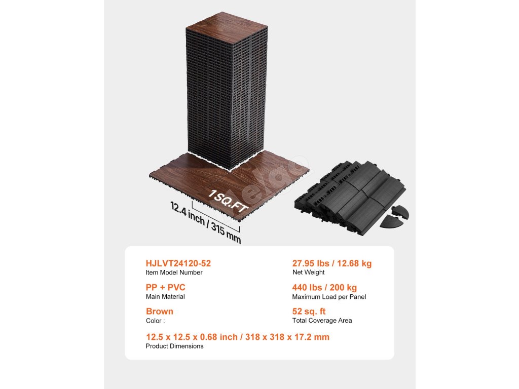 Tanečné dlaždice 12.4×12.4 in, 52 ks, 52 sq. ft/box, tlmiaca podložka