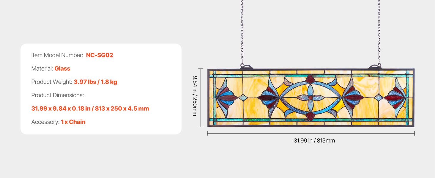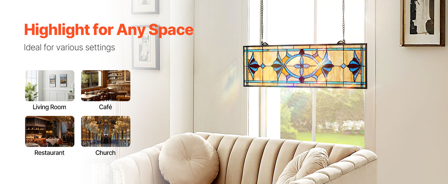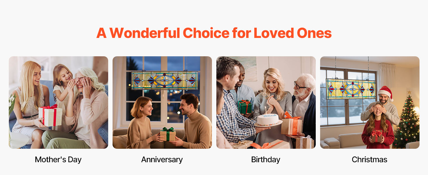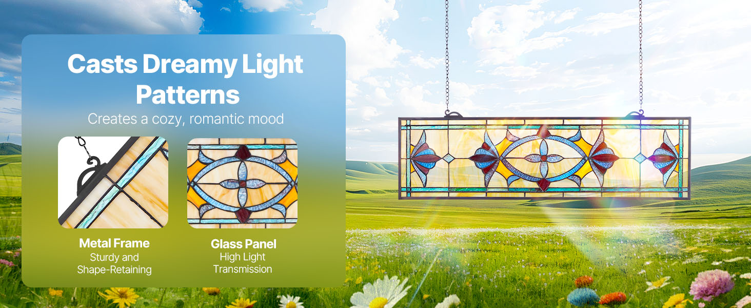 Tento vitrážový závesný panel sa hodí do moderných aj historických interiérov - od obývačiek a kaviarní až po jedálne a kostoly. Zaveste ho, aby ste okamžite vytvorili ohromujúci ústredný bod a umocnili atmosféru akéhokoľvek prostredia.