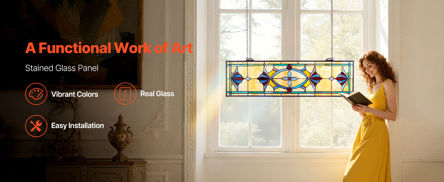 Tento vitrážový okenný panel je viac ako len dekorácia, je to funkčné umelecké dielo. Je vyrobený zo živého skla odolného voči vyblednutiu a skvele sa hodí na okná, steny alebo malé kúty - bez problémov dodá umelecký šarm všade, kde visí.